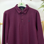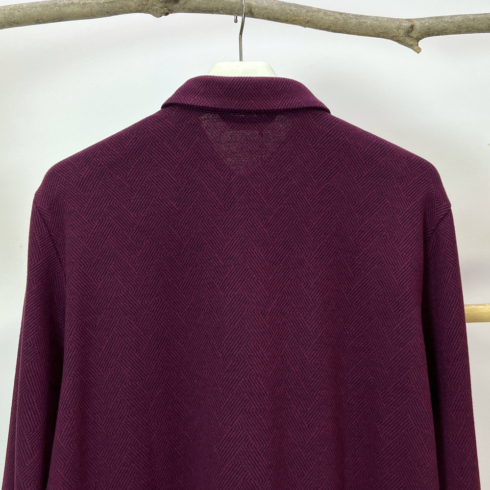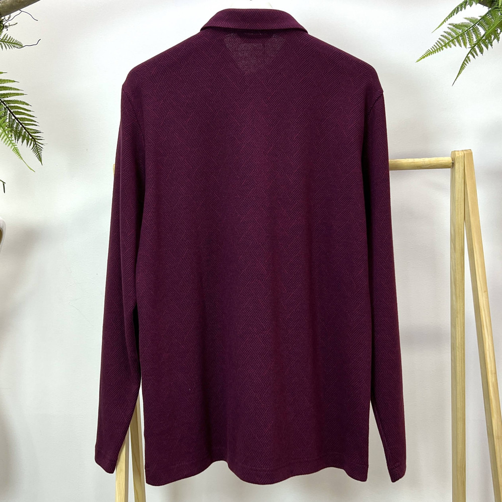헤링본 패턴이 전판에 은은하게 더해진 남성 긴팔 카라 티셔츠입니다.
