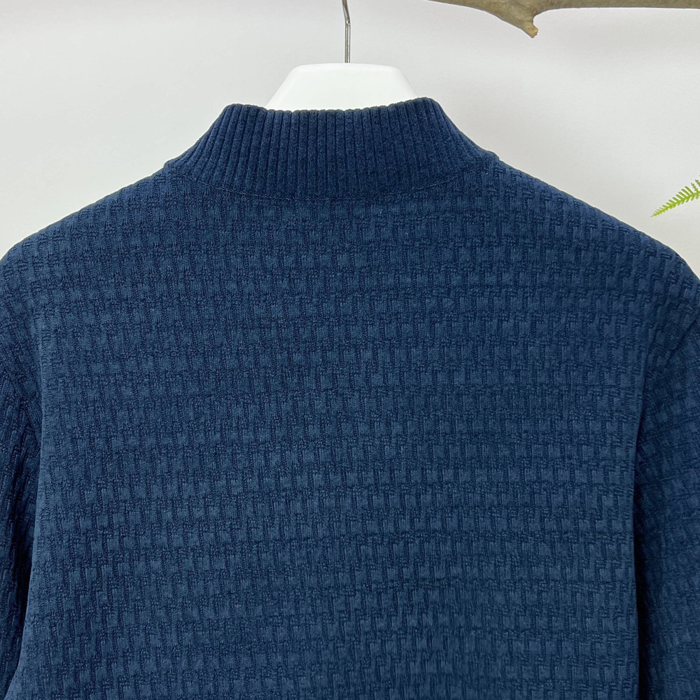 안감이 더해져있어 겨울 시즌에 따뜻하게 착용하기 좋은 남성 반집업 스웨터입니다.