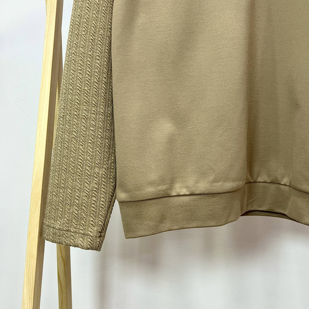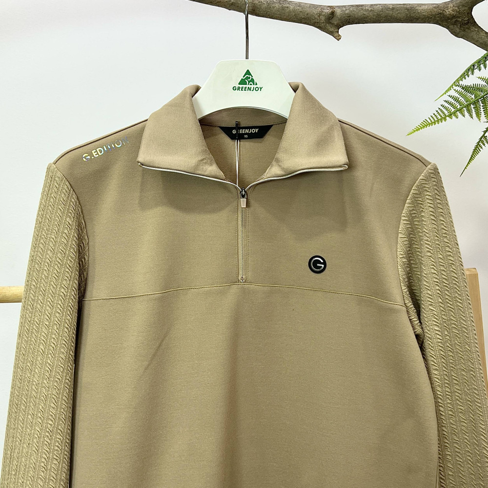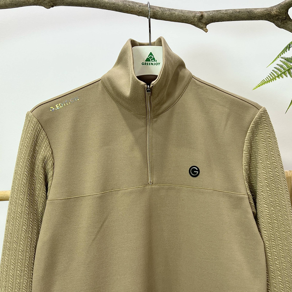 소매 배색으로 포인트를 더해준 남성 하이넥 반집업 긴팔 티셔츠입니다. 가볍고 편안하게 착용하기 좋습니다.