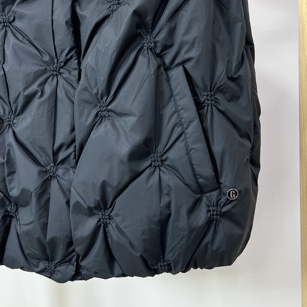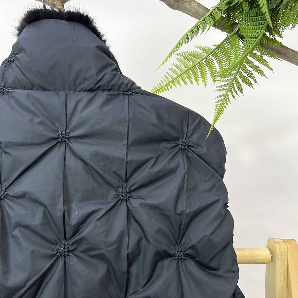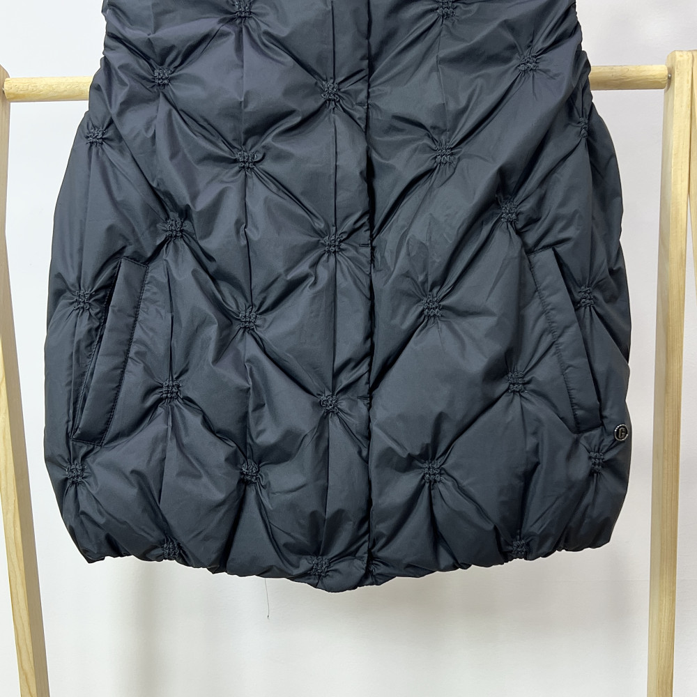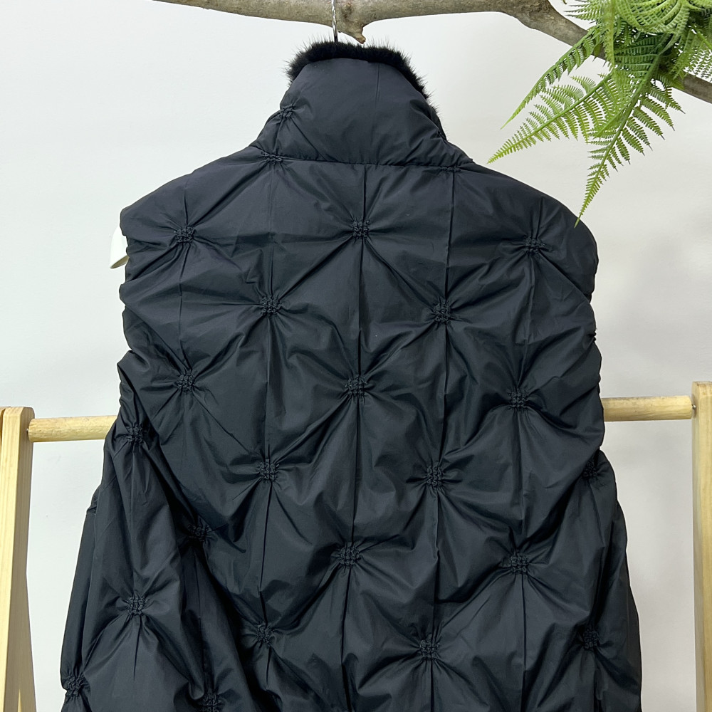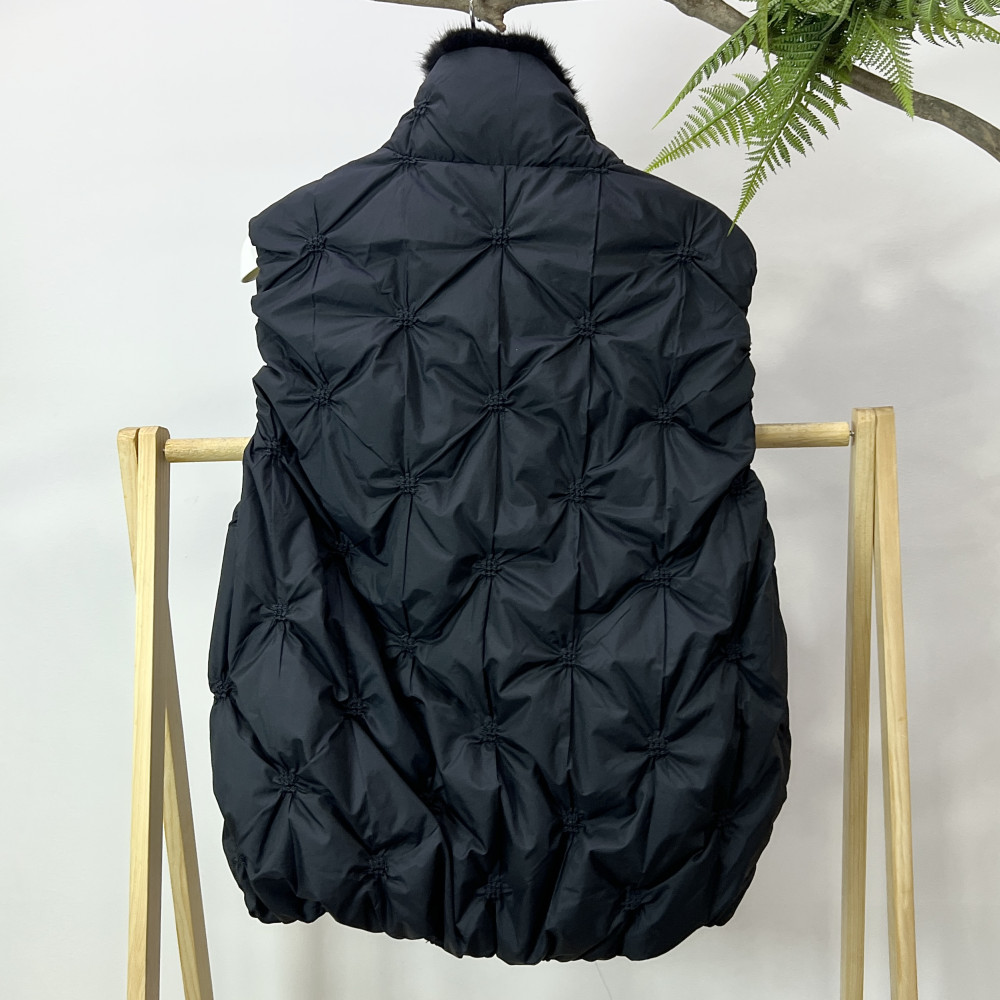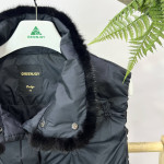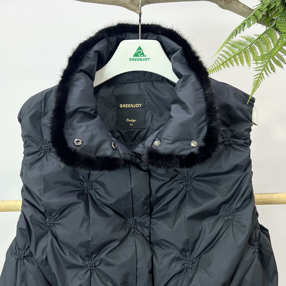 네크라인에 밍크 퍼 트리밍이 더해져 고급스러운 느낌을 더해준 여성 덕다운 조끼입니다.