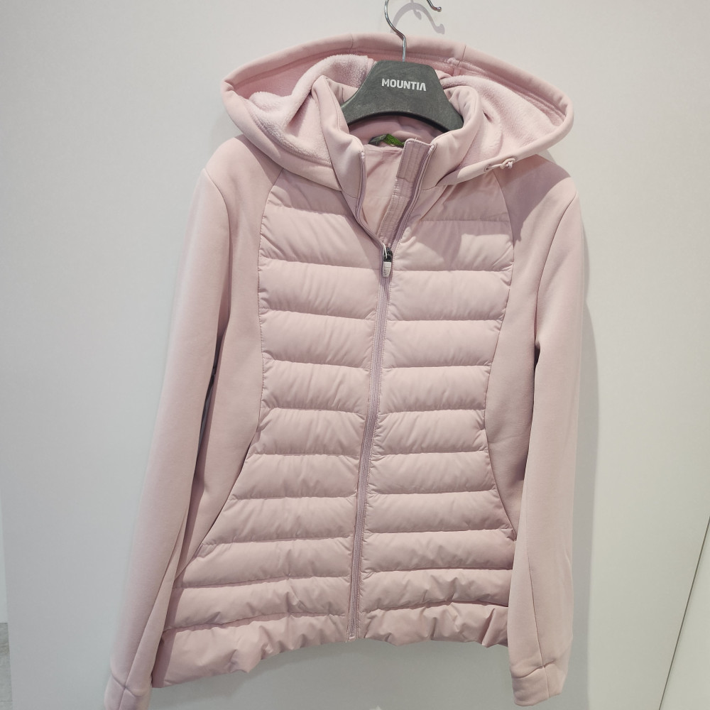 여성하이브리드형 다운자켓 신축성좋은 기모스트레치 원단과 믹스한 다운자켓으로 활동성이 많거나 가벼운산행 다양한 활동에 어울리는 아이템 다운백 퀄팅사양적용 다운삼출 최소화함