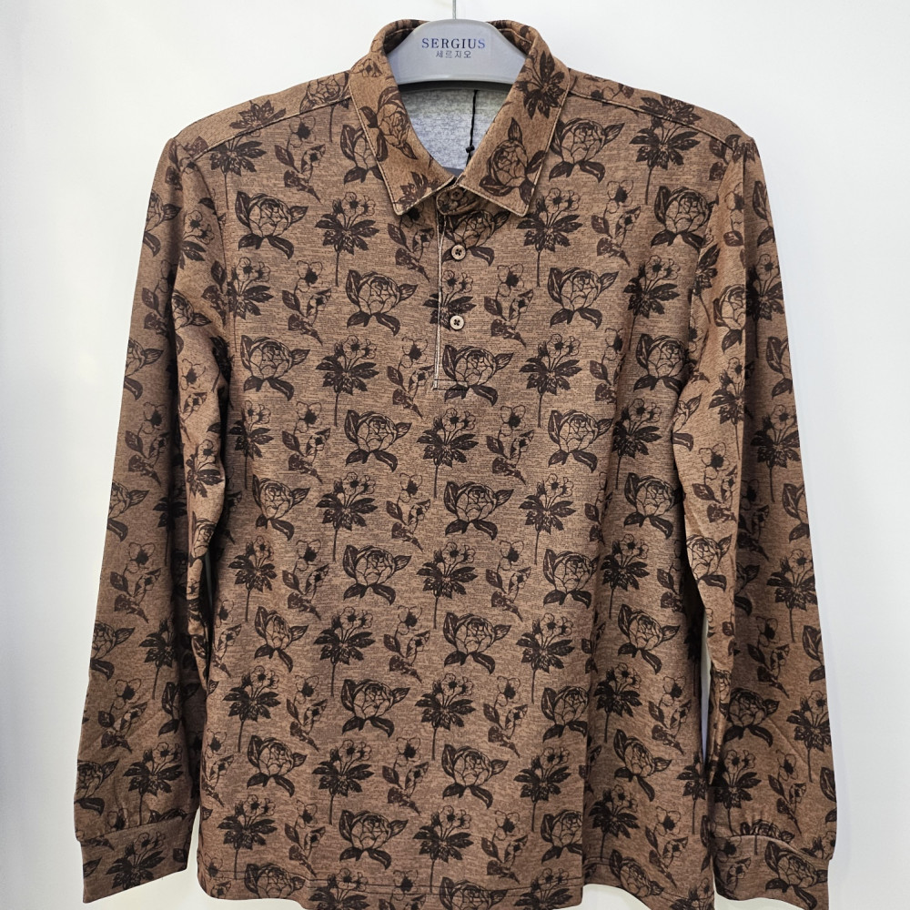 [행복한백화점][세르지오]플라워 프린트 브라운 티셔츠 stsdkmf4627