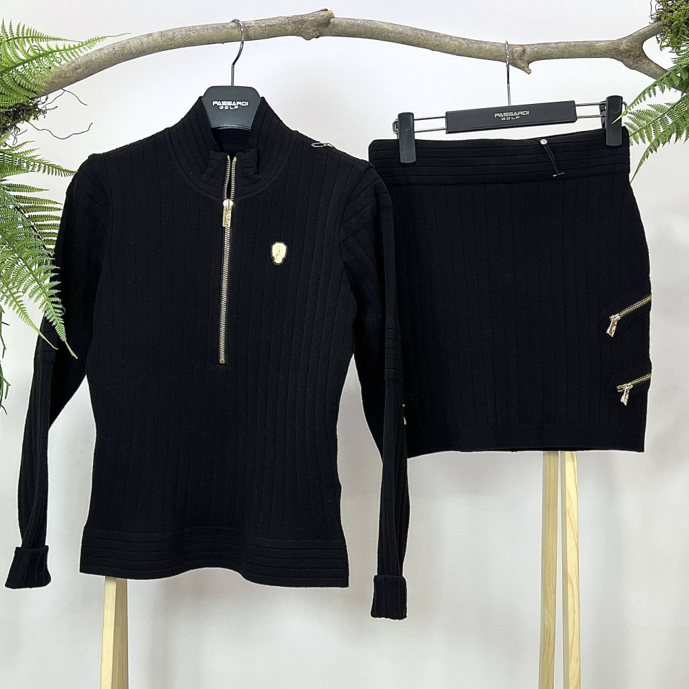편안하고 멋스럽게 착용하기 좋은 여성 니트 스커트입니다. 세트 구성의 반집업 니트와 함꼐 착용하기 좋습니다.