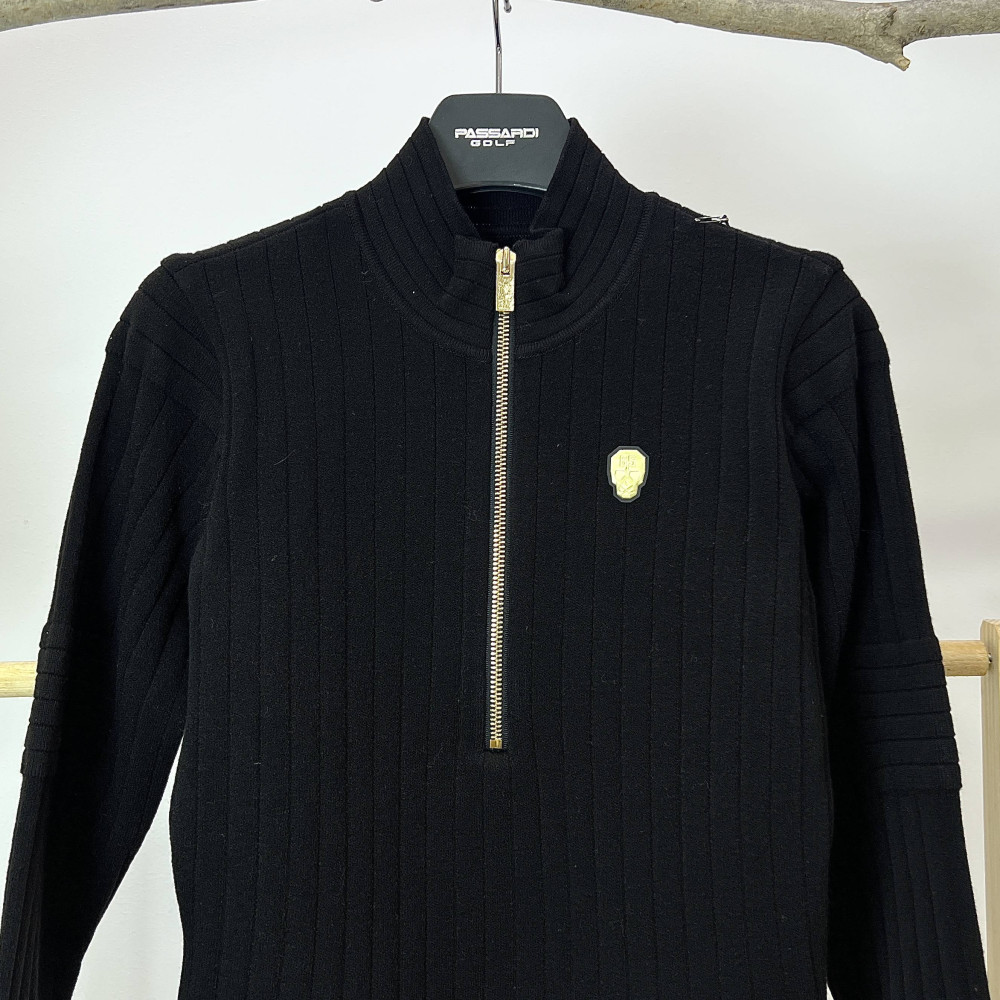편안하고 멋스럽게 착용하기 좋은 여성 반집업 니트 티셔츠입니다. 세트 구성의 스커트와 함꼐 착용하기 좋습니다.
