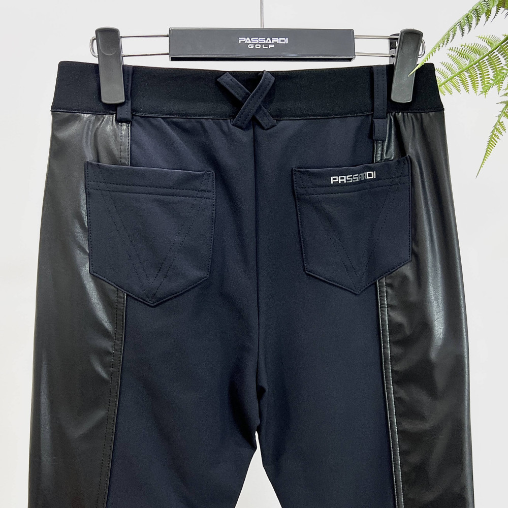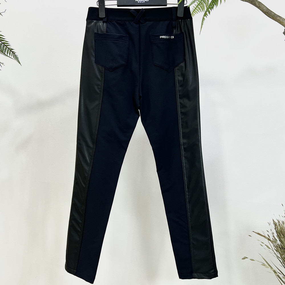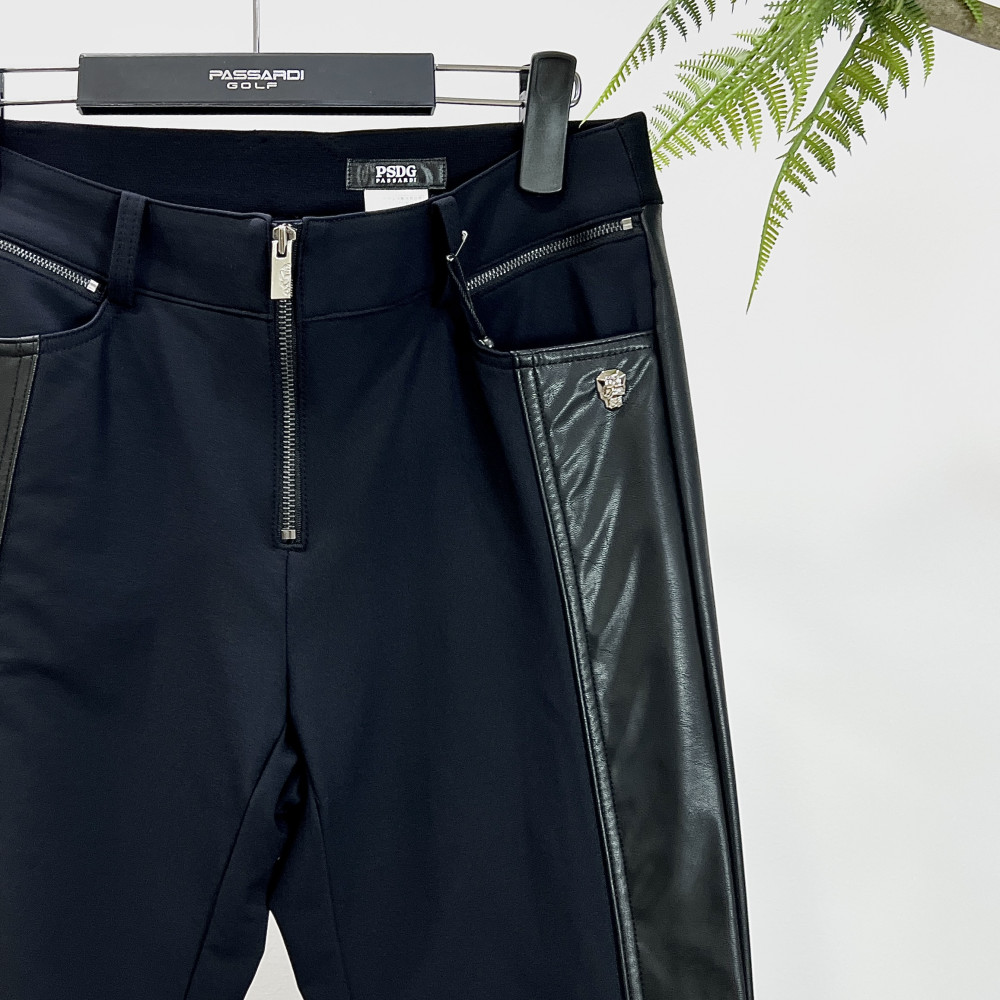 소재 배색을 더해 시크한 매력을 더해주는 여성 일자핏 팬츠입니다. 레그라인이 더욱 길고 가늘어 보일 수 있게 연출해줍니다.
