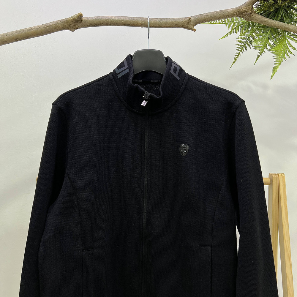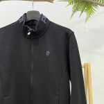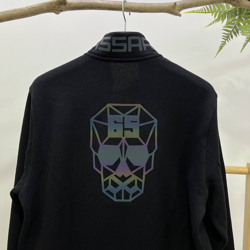 로고와 스컬 포인트가 더해진 남성 집업 져지 점퍼입니다.