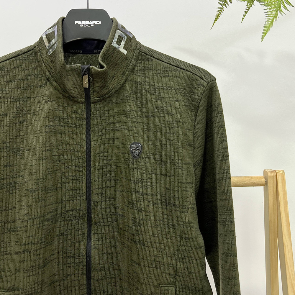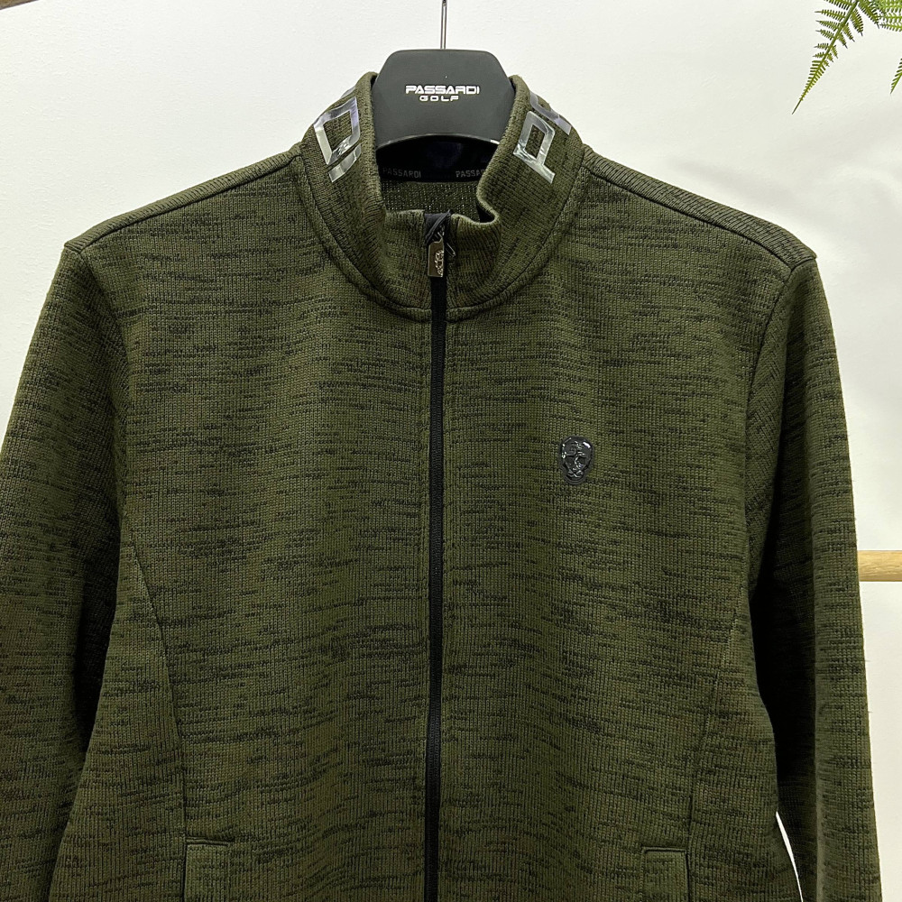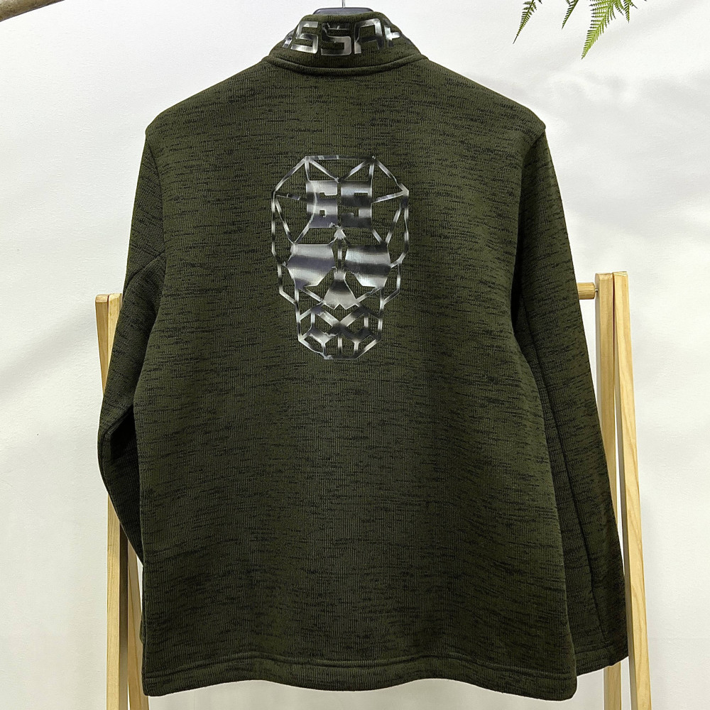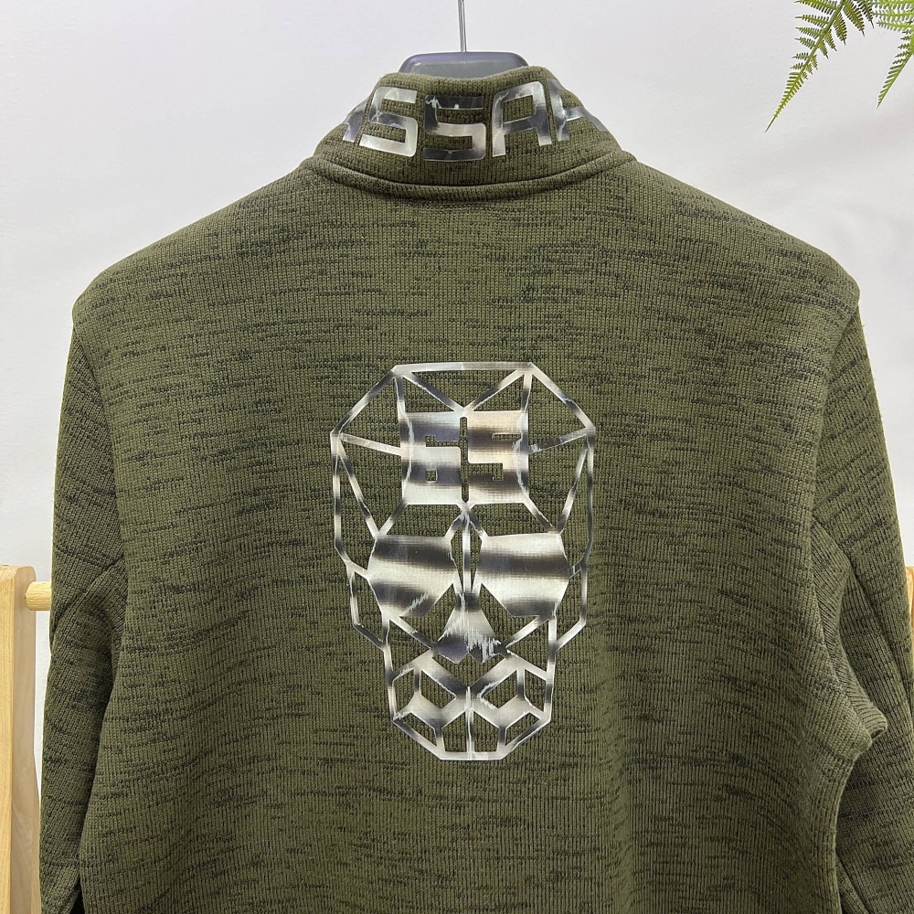 로고와 스컬 포인트가 더해진 남성 집업 져지 점퍼입니다.