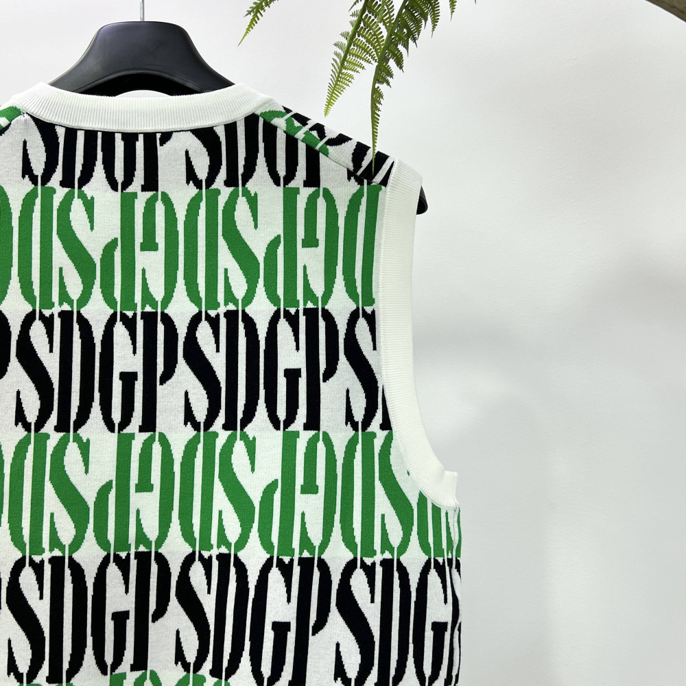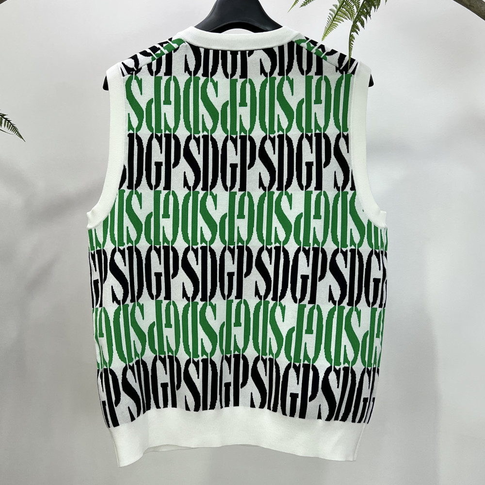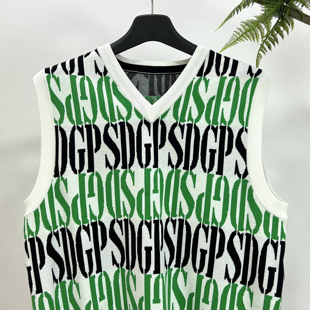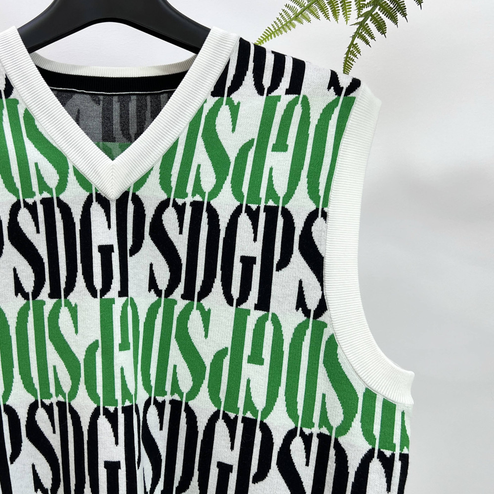 로고 패턴이 더해진 남성 니트 베스트입니다.