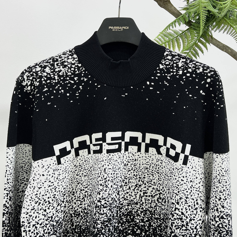 그라데이션이 더해진 색감이 멋스러운 남성 반목 니트입니다.