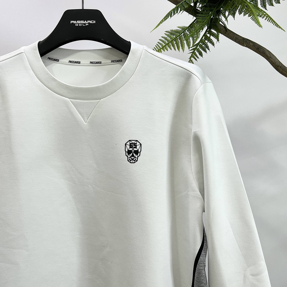 앞뒤 컬러 배색으로 반전 매력을 더해준 남성 라운드넥 맨투맨 티셔츠입니다.