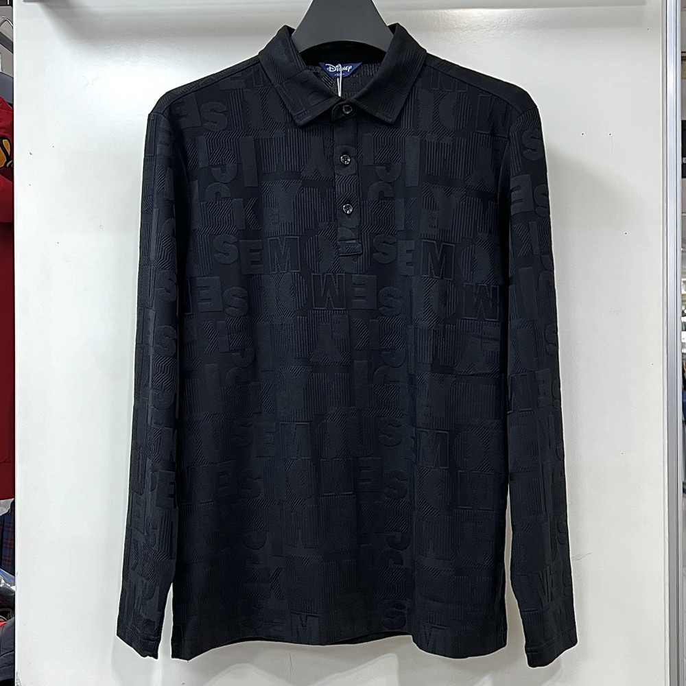 [행복한백화점][디즈니골프]전판 레터링 긴팔 카라 티셔츠 블랙 남성 DO3MTS003