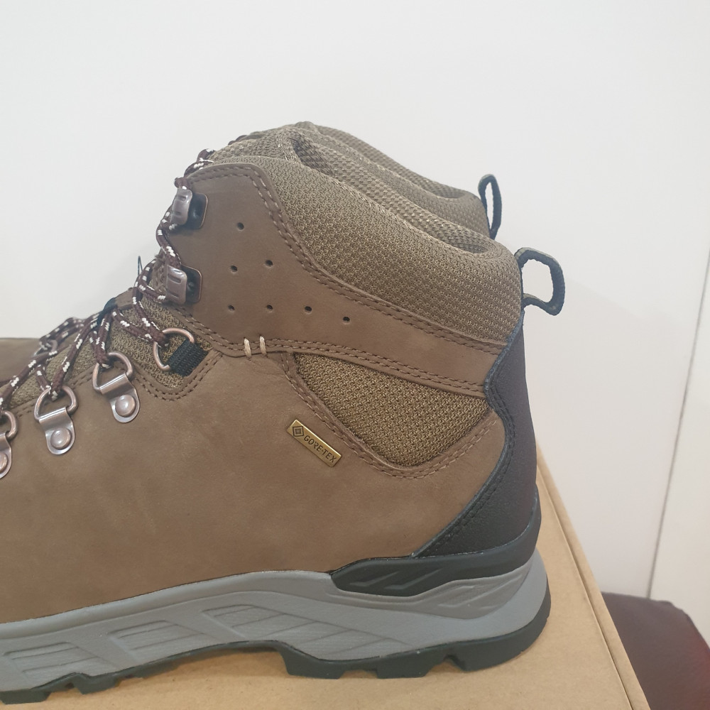 사계절 중장거리 산행에 적합한 미드컷등산화 측면과 발등부분까지 누벅가죽이 전체를 감싸는 디자인으로 제작되어 내구성과 착용감이 우수 고아텍스 100% 방수 투습 기능으로 최적의 보행환경제공