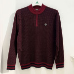 [행복한백화점][그린조이]투톤 잔체크 하프집업 니트 와인 남성 GF24SL21M