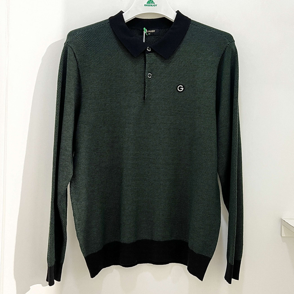 [행복한백화점][그린조이]트윌조직 솔리드 긴팔 폴로 니트 그린 남성 GF24SP21M