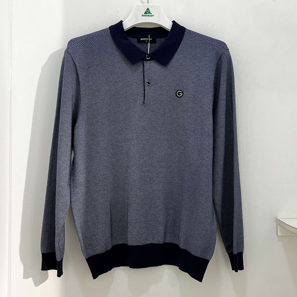 [행복한백화점][그린조이]트윌조직 솔리드 긴팔 폴로 니트 그레이쉬블루 남성 GF24SP21M