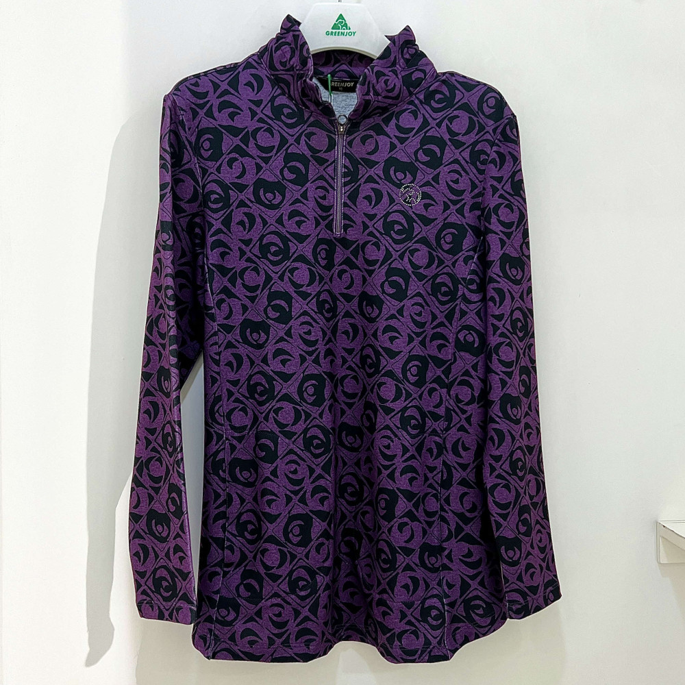 [행복한백화점][그린조이]장미 프린트 러플카라 반집업 긴팔 티셔츠 보라 여성 GF24KL24W