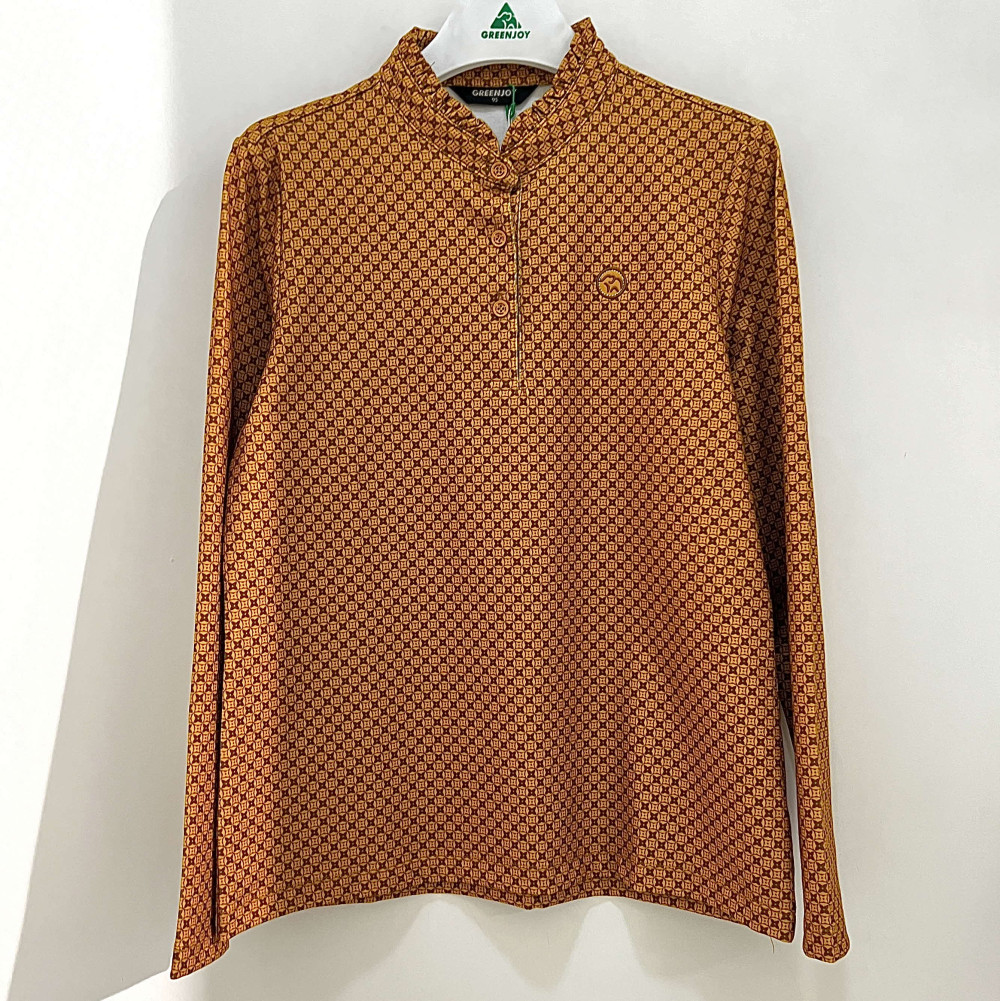 [행복한백화점][그린조이]프린트 러플 에리 반폴라 티셔츠 머스타드 여성 GF24KL22W >