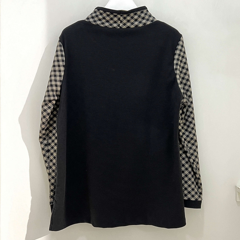 [행복한백화점][그린조이]체크 롱 반폴라 티셔츠 블랙 여성 GF24KL31W