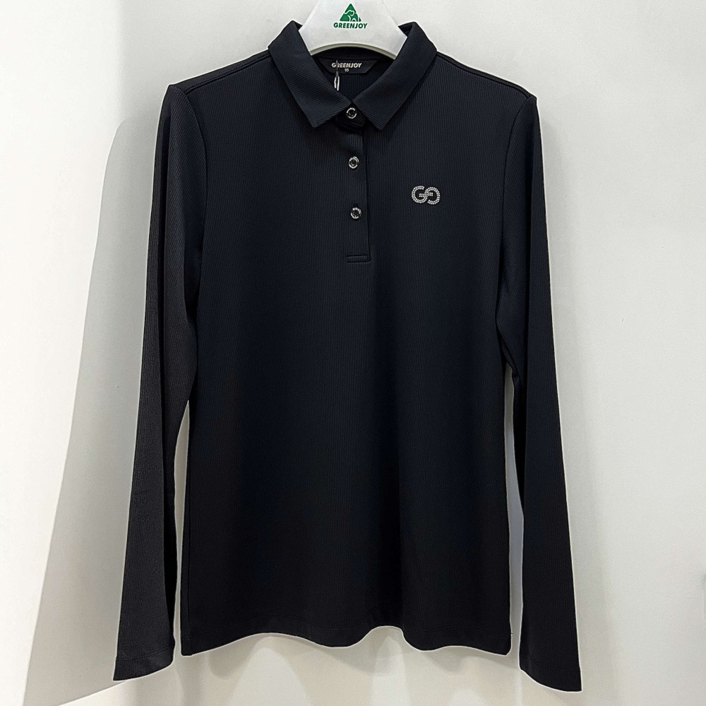 [행복한백화점][그린조이]솔리드 골조직 긴팔 카라 티셔츠 블랙 여성 GF24KY51W