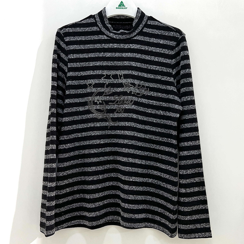 [행복한백화점][그린조이]멜란지 스트라이프 모크넥 티셔츠 블랙 여성 GM24KL81W