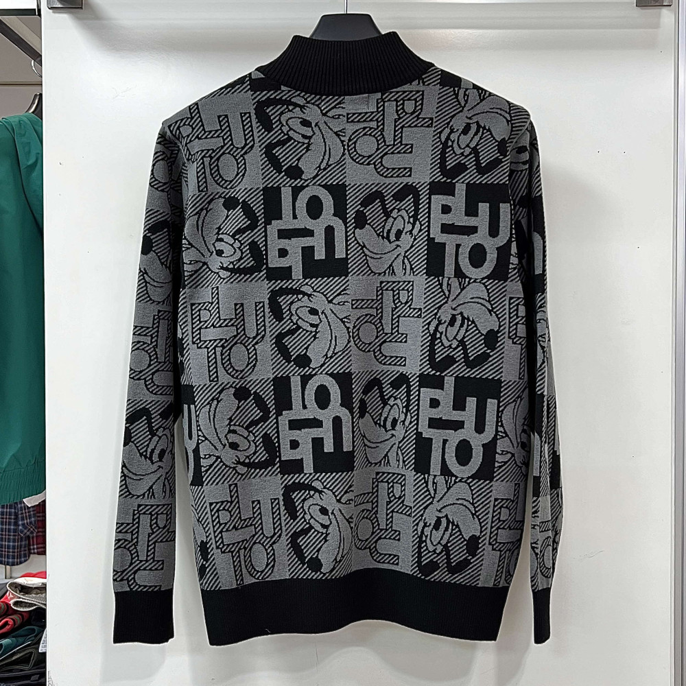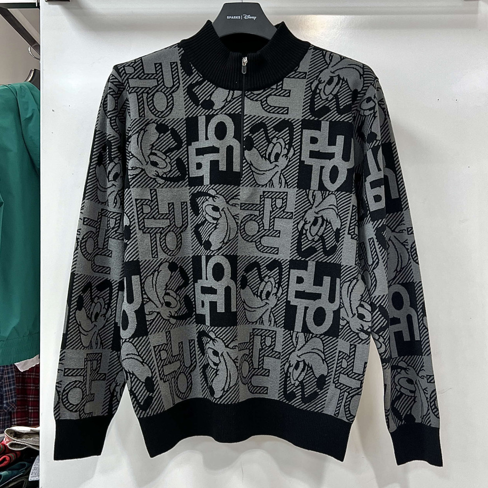[행복한백화점][디즈니골프]전판 플루토 패턴 반집업 울 니트 차콜 남성 DO3MKT004