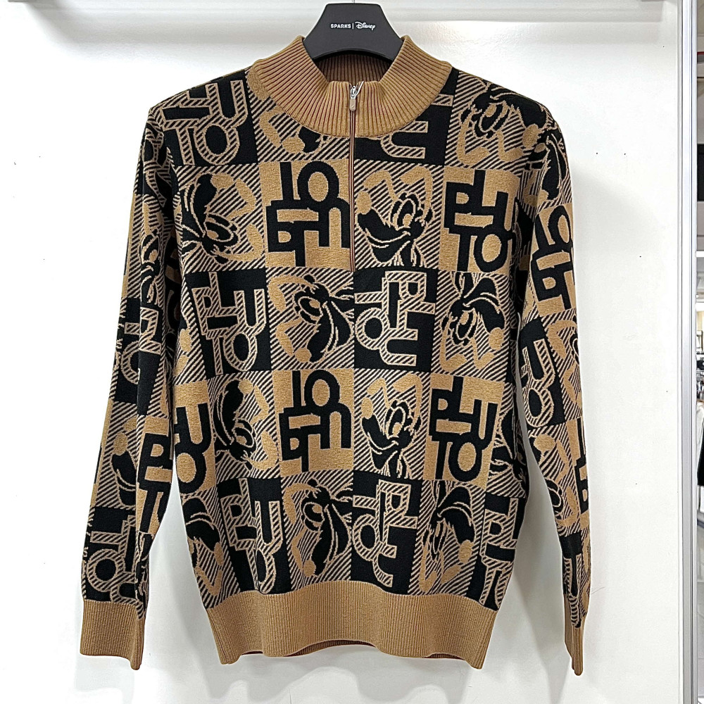 [행복한백화점][디즈니골프]전판 플루토 패턴 반집업 울 니트 베이지 남성 DO3MKT004
