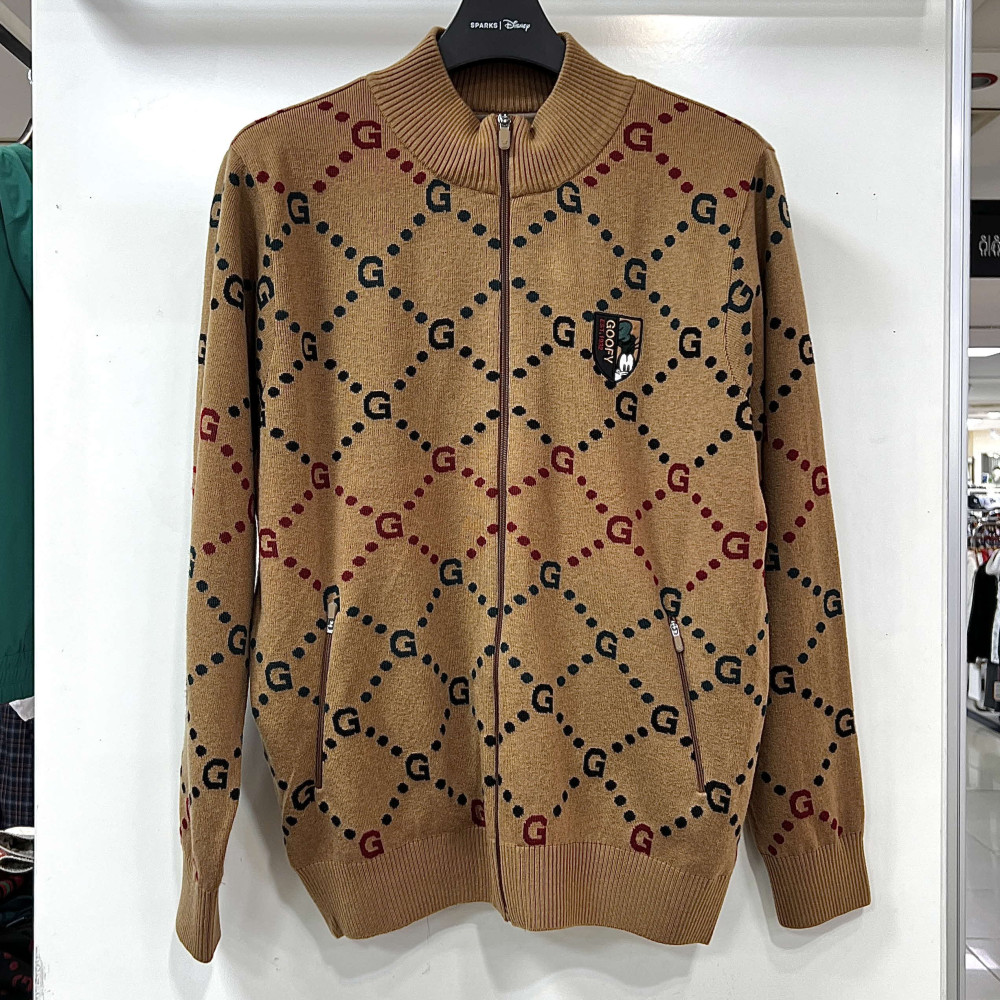 [행복한백화점][디즈니골프]다이아 패턴 반목 풀집업 방풍 니트 가디건 카멜 남성 DO3MKG005