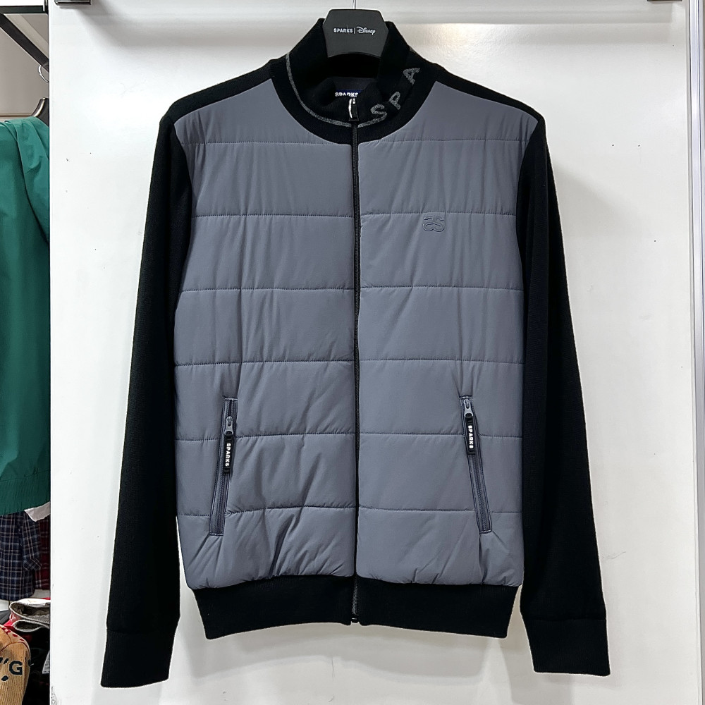 [행복한백화점][디즈니골프]패딩배색 하이넥 니트 집업 점퍼 블랙 남성 SO3MJB003