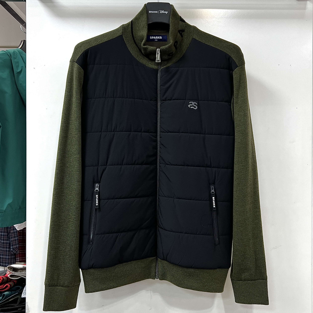 [행복한백화점][디즈니골프]패딩배색 하이넥 니트 집업 점퍼 카키 남성 SO3MJB003