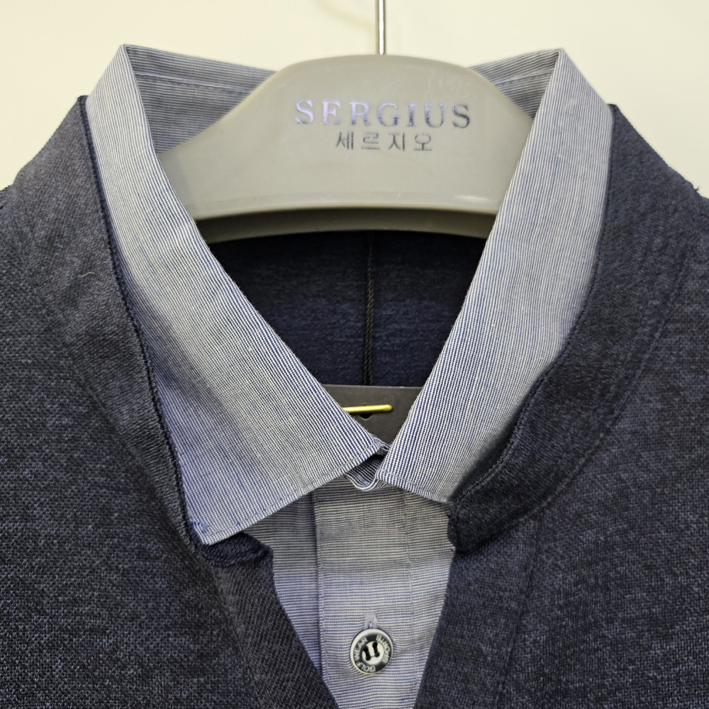 [행복한백화점][세르지오]우븐 네이비 레리어드 티셔츠 stsvbmg1712