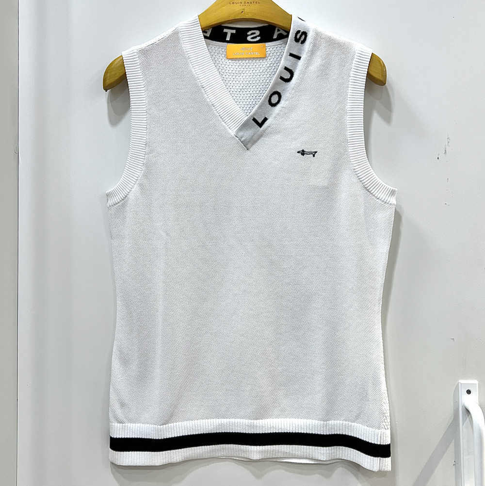 [행복한백화점][루이까스텔]넥어라운드 로고 포인트 스카시 쿨 브이넥 니트 조끼 여성 7LEVT302