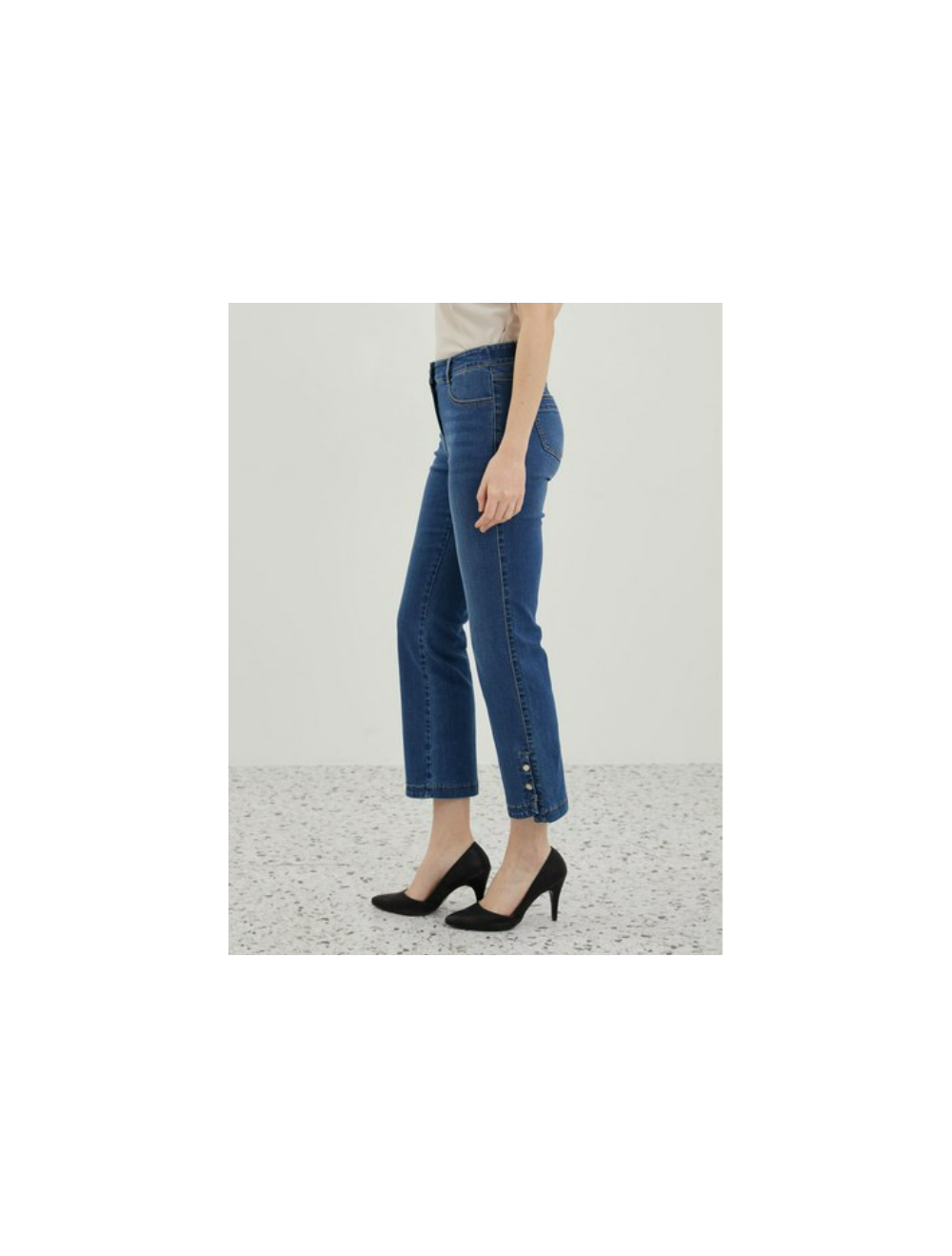 밑단 단추 포인트로 케주얼한 스타일 연출이 가능한 아이탬 입니다
