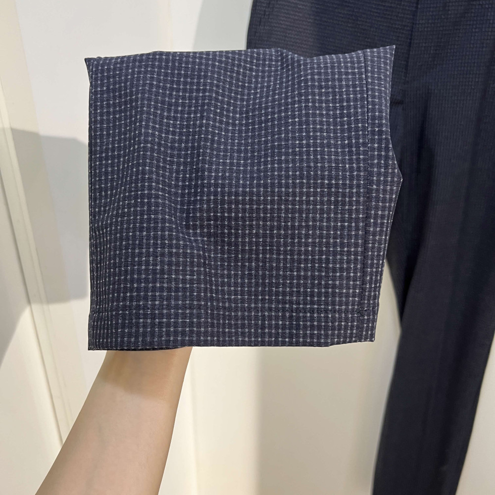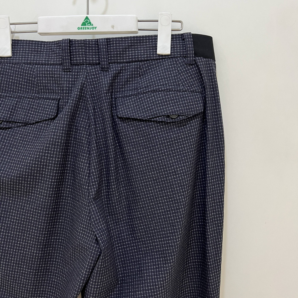 전판 잔체크 패턴의 남성 팬츠입니다. 양 옆 허리 밴딩을 더해준 스트레치 팬츠로 착용감이 편안합니다.