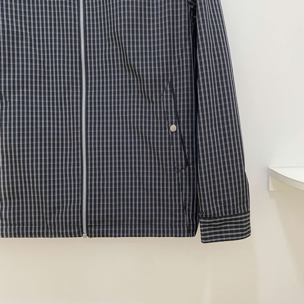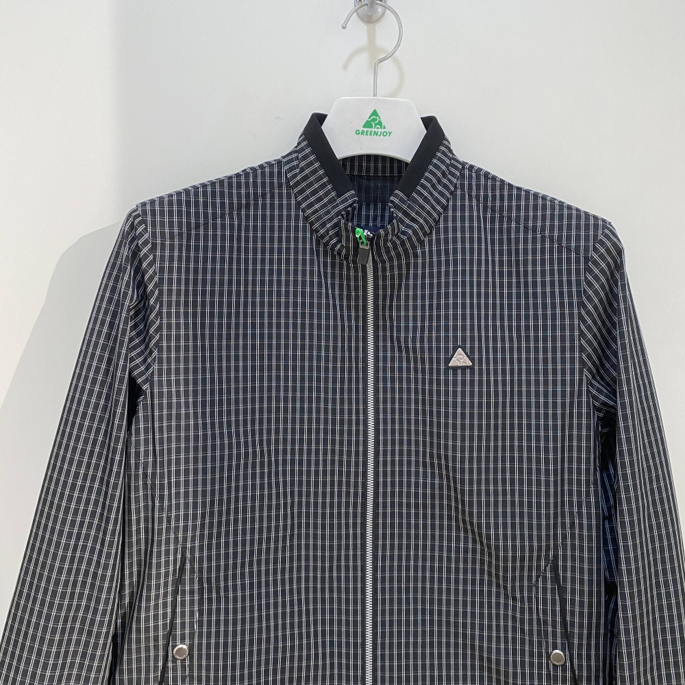 전판 체크 패턴의 남성 하이넥 풀집업 점퍼입니다.