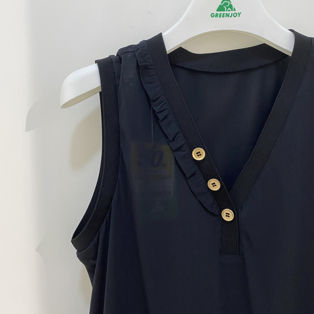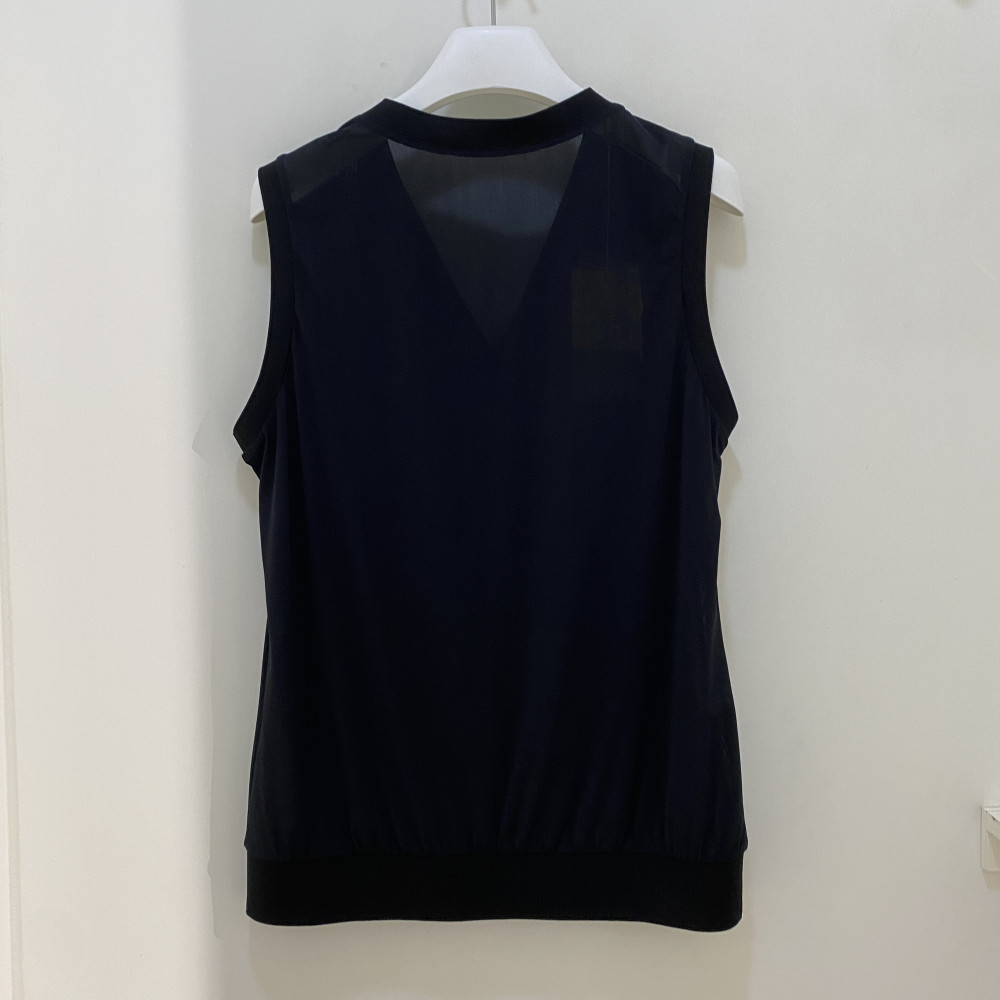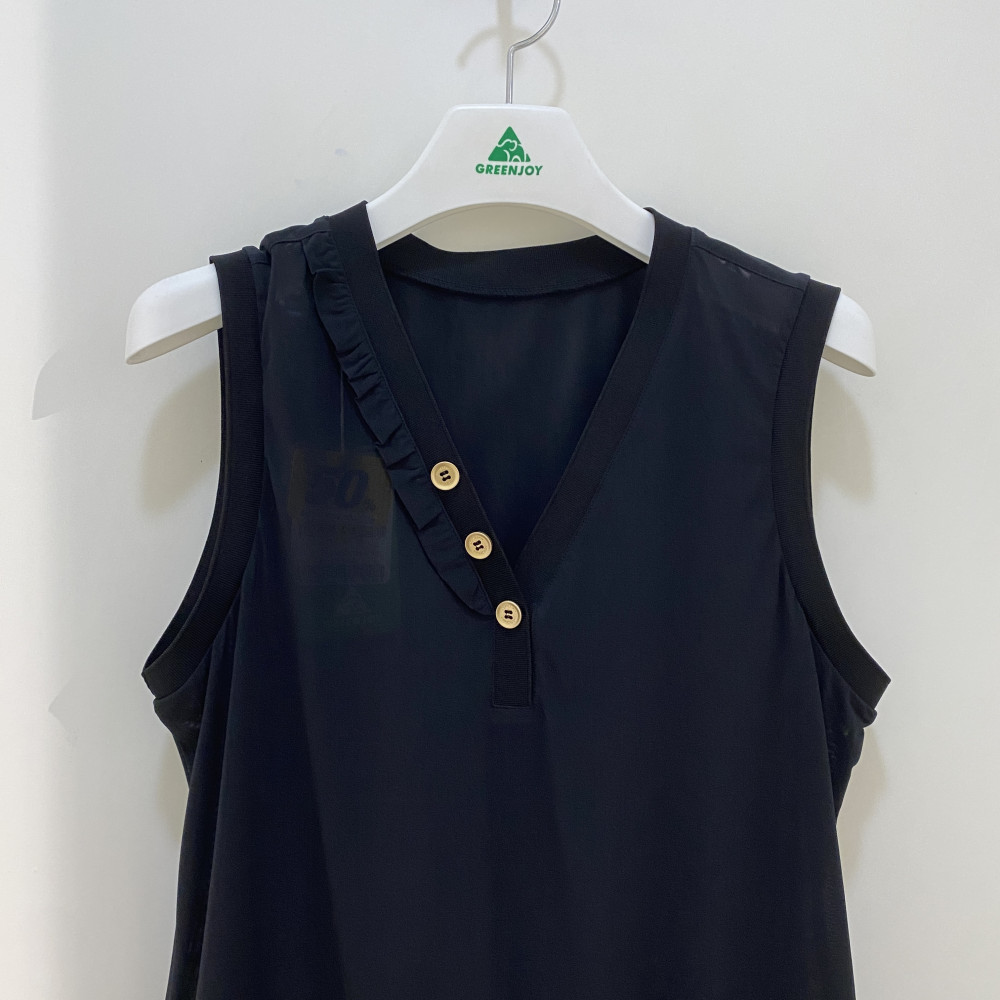 네크라인 부분에 셔링 디테일을 더해준 여성 쉬폰 브이넥 조끼입니다.