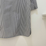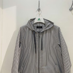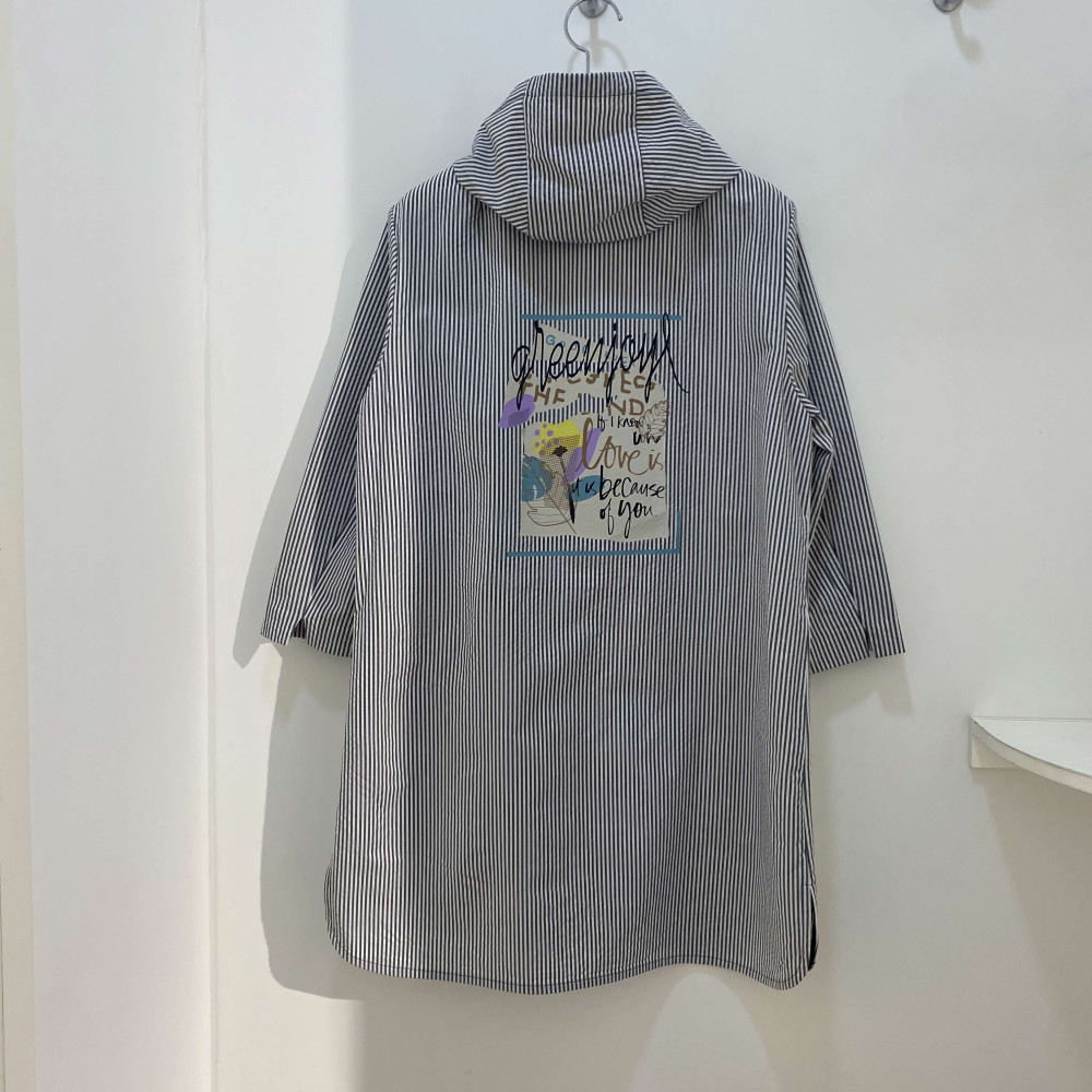 스트라이프 패턴의 여성 롱기장 후드 바람막이 점퍼입니다.