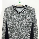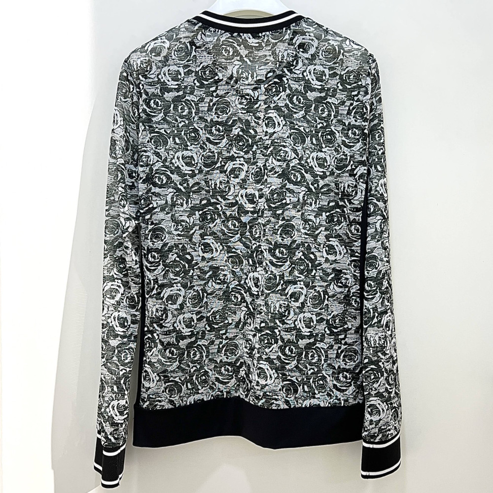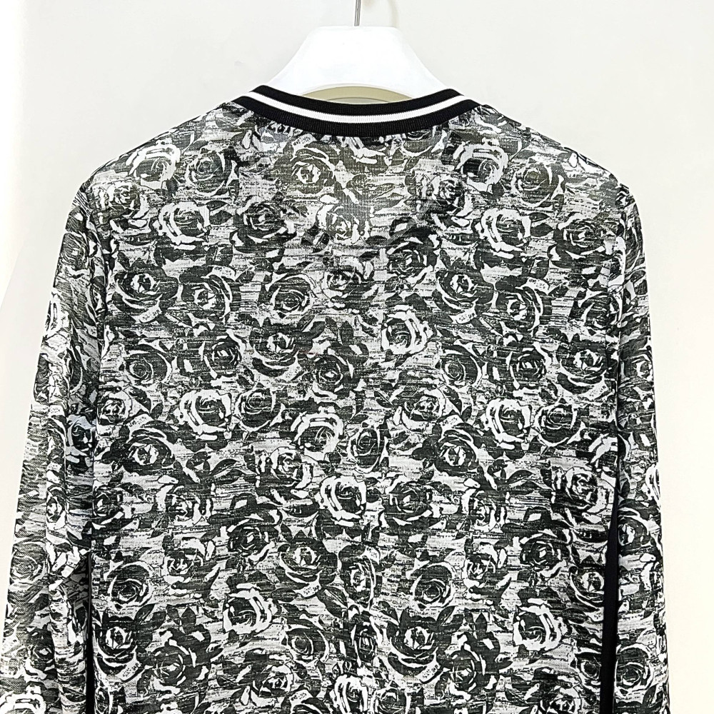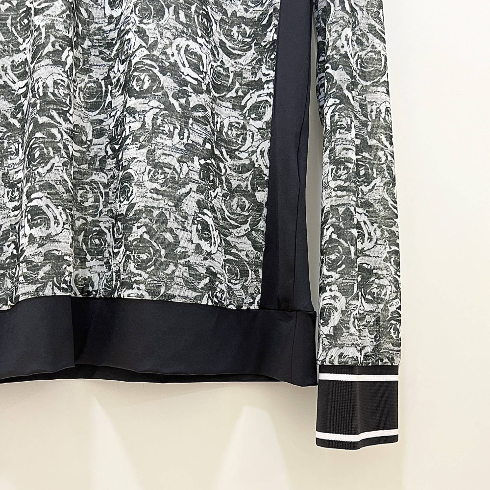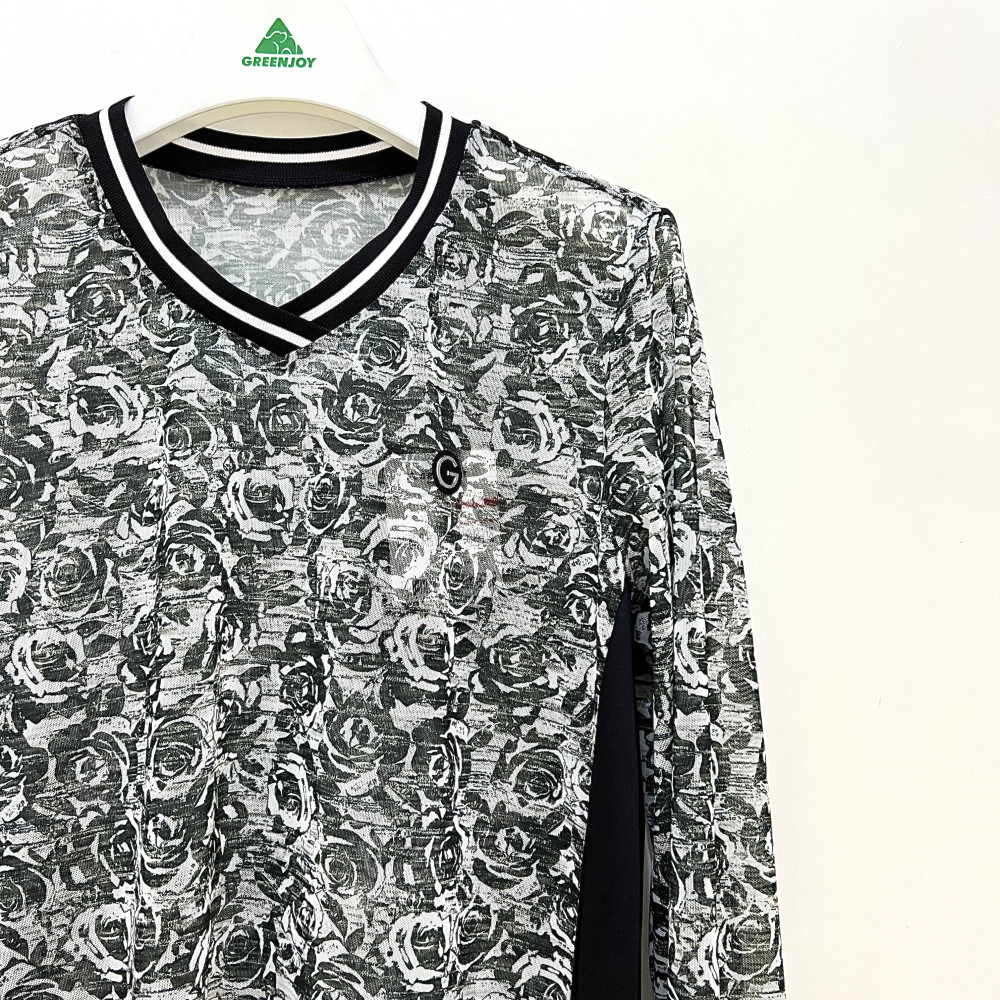 플라워 프린트가 더해진 메쉬 소재의 브이넥 긴팔 티셔츠입니다.