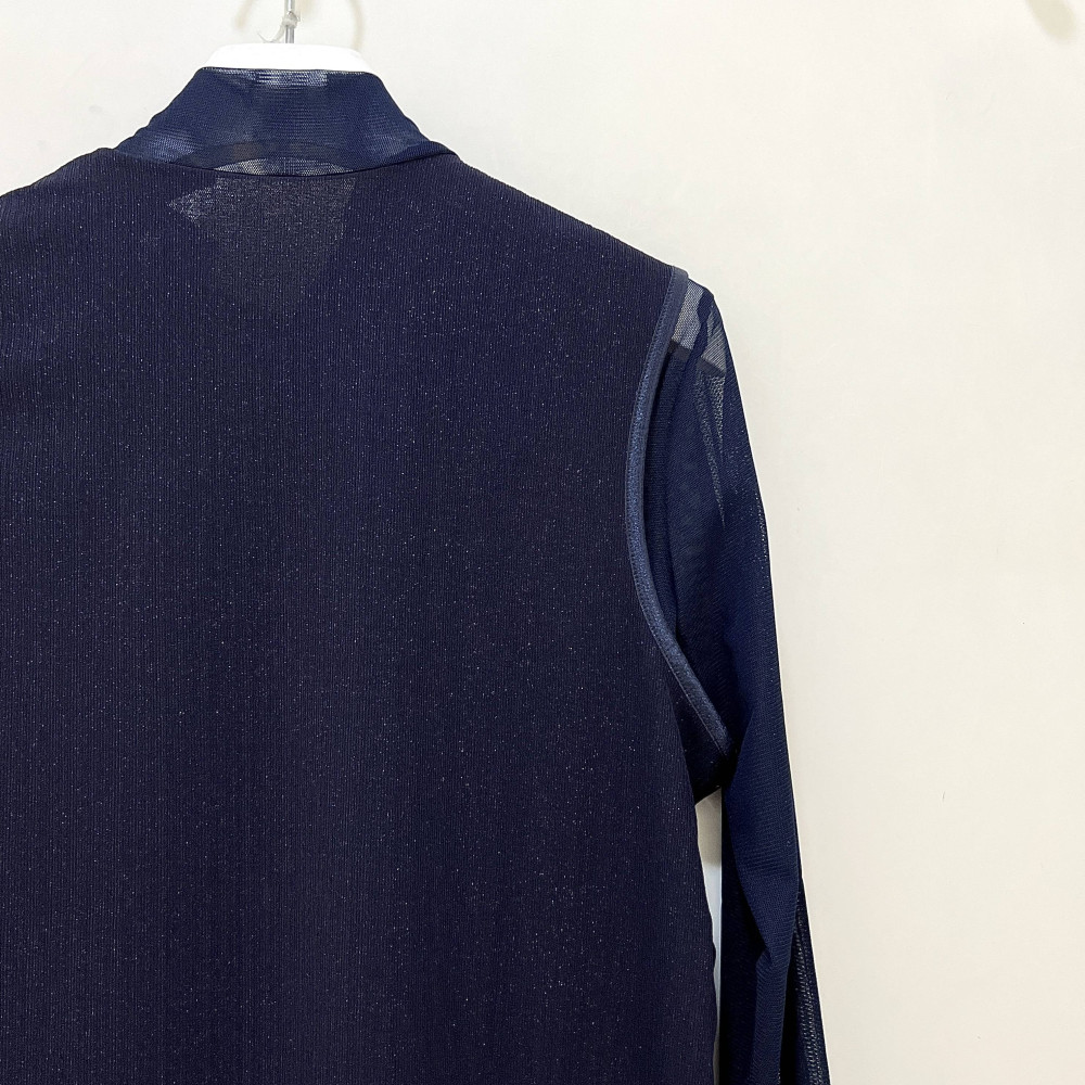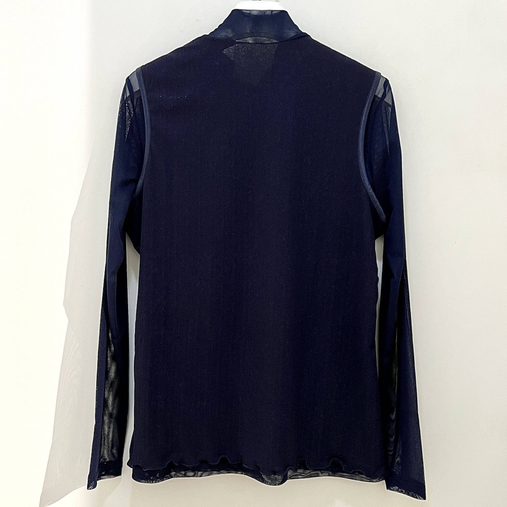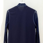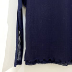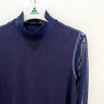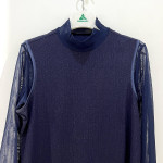 쉬폰 소재 배색을 더해준 여성 반폴라 긴팔 티셔츠입니다. 펄감이 더해져 포인트로 착용하기 좋습니다.