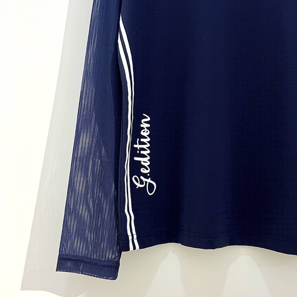 소매와 상단 부분에 메쉬 소재 배색을 더해주어 가볍고 시원하게 착용하기 좋은 여성 반목 긴팔 티셔츠입니다.