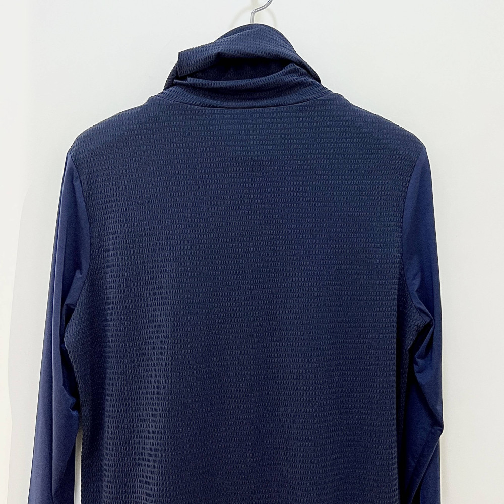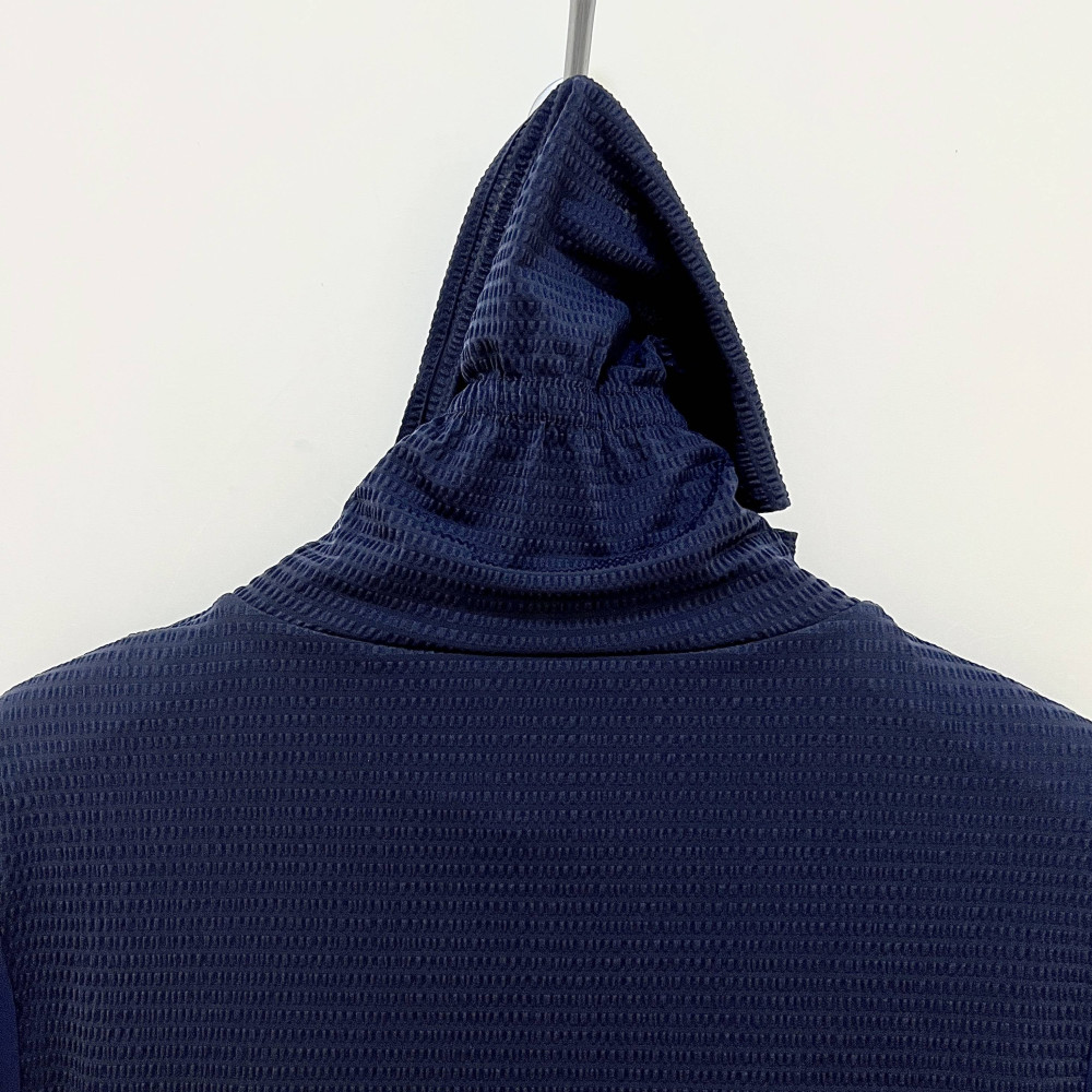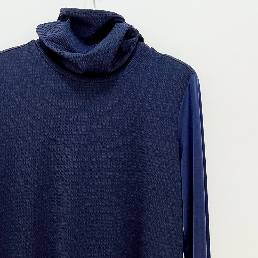 가볍고 시원하게 착용하기 좋은 시어서커 소재의 여성 폴라 티셔츠입니다. 마스크 처럼 활용할 수 있어 자외선 차단에 좋습니다.