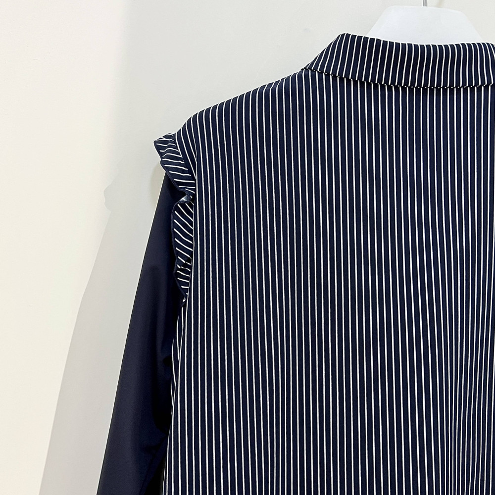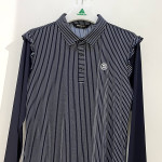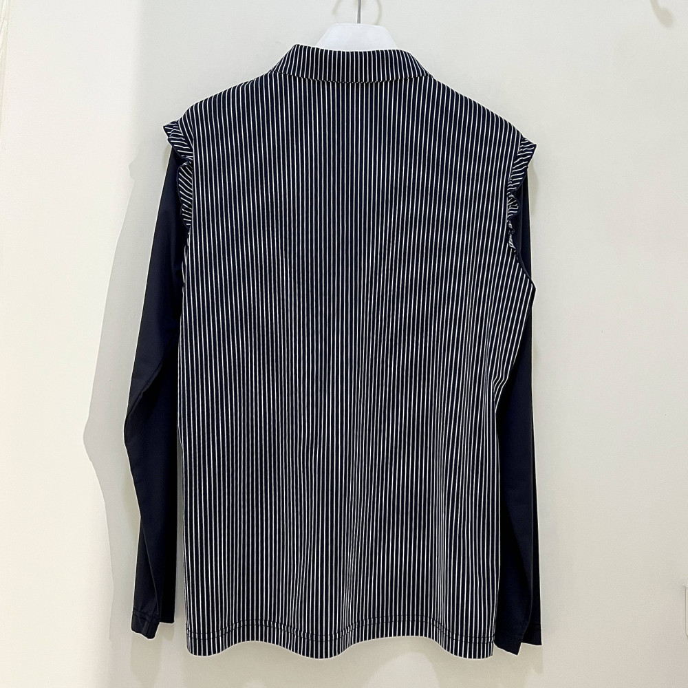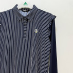 몸판부분 세로 스트라이프 패턴과 숄더 라인 프릴 포인트를 더해준 여성 긴팔 카라 티셔츠입니다. 자외선 차단 및 냉감 기능이 더해진 기능성 원단이라 여름 시즌에 시원하게 착용하기 좋습니다.