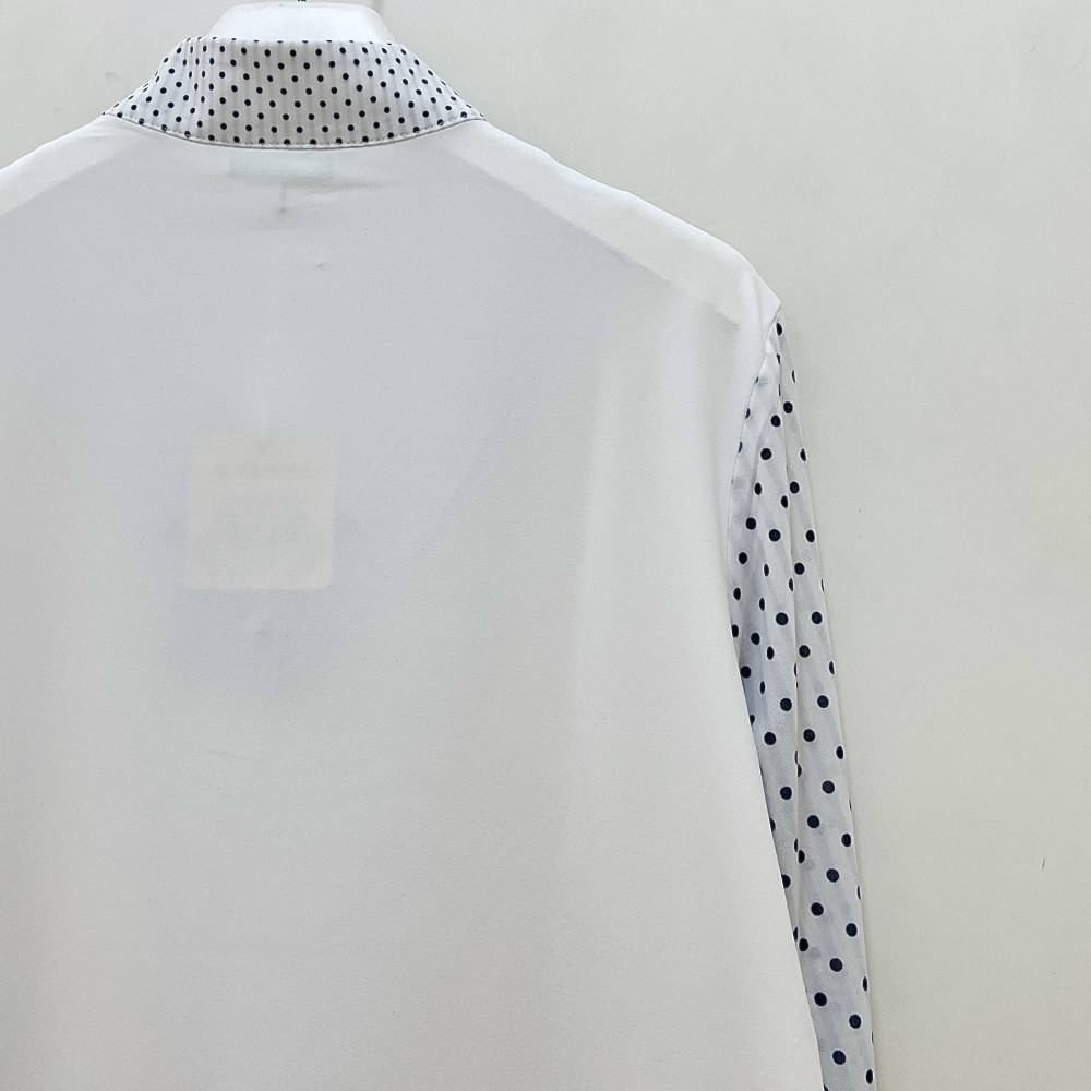 넥과 소매 부분에 도트 패턴의 메쉬 소재가 더해진 기능성 소재의 여성 긴팔 티셔츠입니다. 자외선 차단 및 냉감 기능이 더해진 기능성 원단이라 여름 시즌에 시원하게 착용하기 좋습니다.