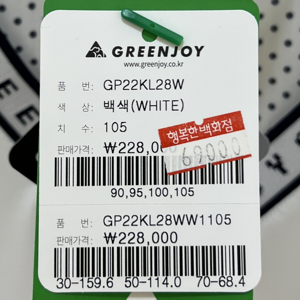[행복한백화점][그린조이] 기능성 반목 반지퍼 긴팔 티셔츠 화이트 여성 GP22KL28W 요약정보 및 구매