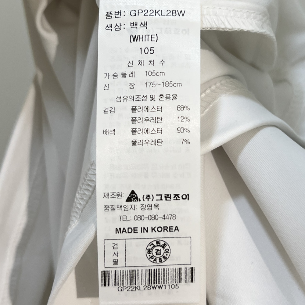 [행복한백화점][그린조이] 기능성 반목 반지퍼 긴팔 티셔츠 화이트 여성 GP22KL28W >