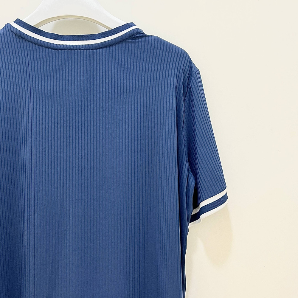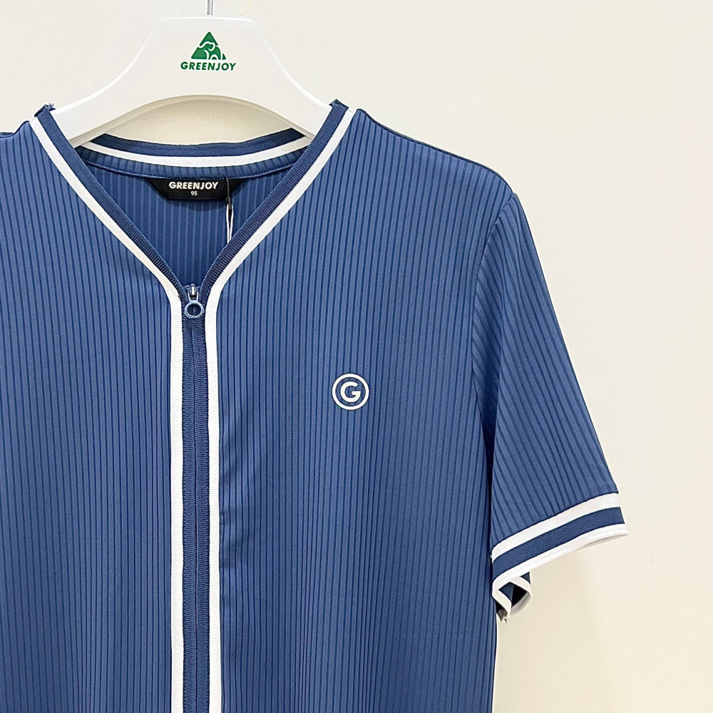 브이 네크라인의 여성 풀집업 반팔 티셔츠입니다.