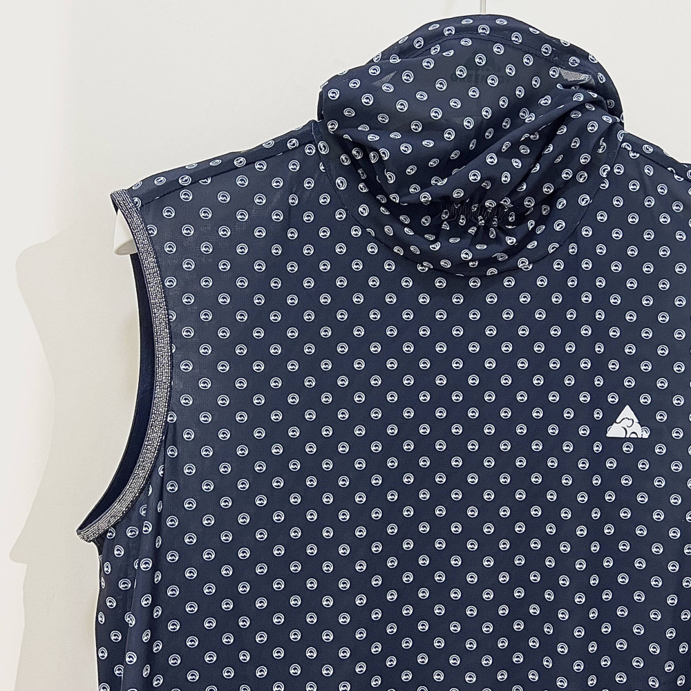 여름 시즌에 착용하기 좋은 나시 베스트 티셔츠입니다. 넥 부분을 올려 마스크로 사용해서 햇빛을 차단할 수 있습니다.