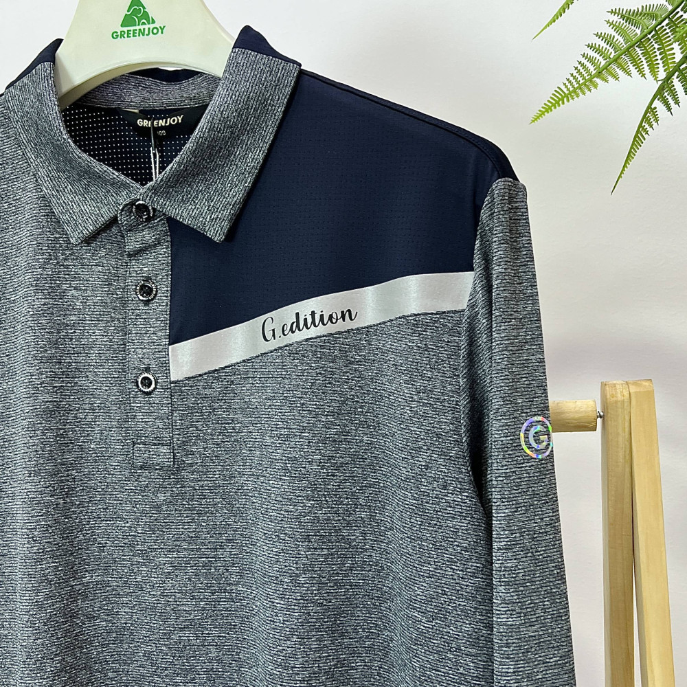 자외선 차단 기능이 더해졌으며 가볍고 시원하게 착용하기 좋은 기능성 원단으로 만든 긴팔 카라 PK 티셔츠입니다.