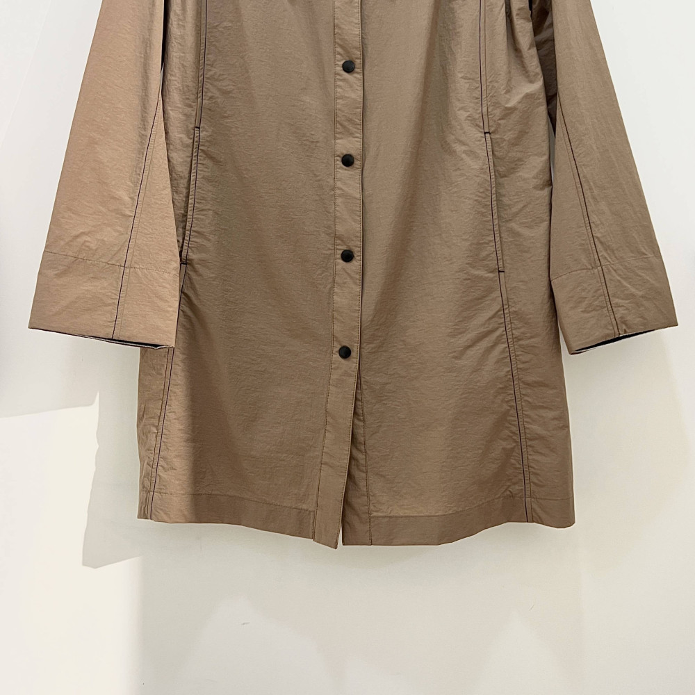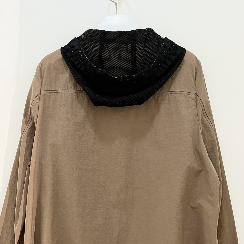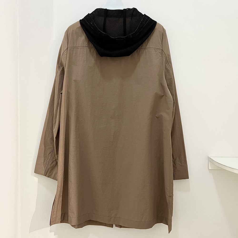 후드 부분 컬러 배색을 더해준 롱기장의 여성 점퍼입니다. 간절기에 편안하게 착용하기 좋습니다.