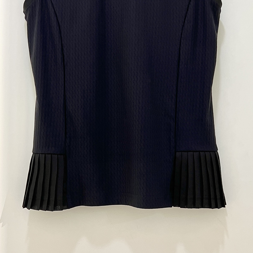 밑단 양 사이드에 플리츠 배색 포인트를 더해준 나시 카라 PK 티셔츠입니다. 여름 시즌에 가볍고 시원하게 착용하기 좋습니다.