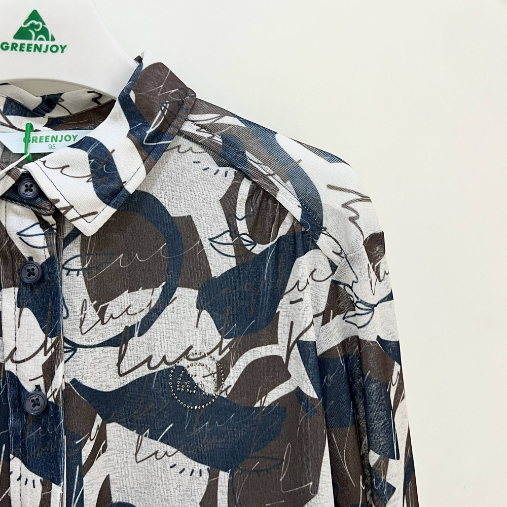 레터링 프린트 패턴이 더해져 멋스러운 디자인의 여성 긴팔 PK 티셔츠입니다.